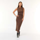 Robe longue gaufrée avec emmanchure américaine MARRON