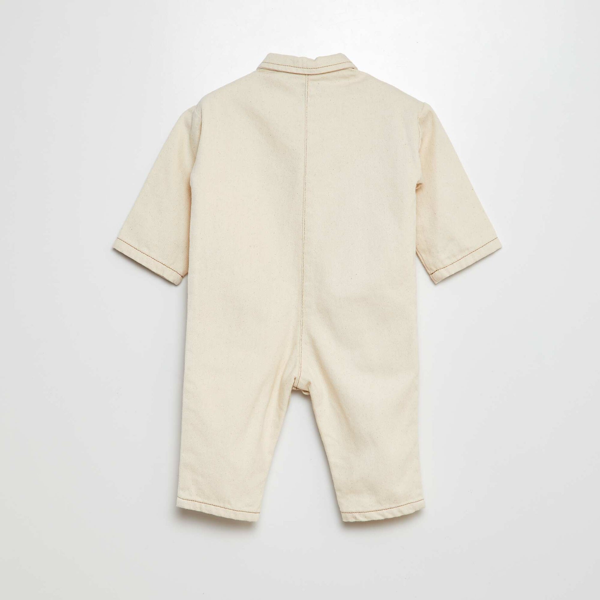 Cette combinaison longue trop craquante, c’est le must-have pour allier confort et pratique ! - Combinaison longue - Col chemise - Manches longues - Ouverture boutonnée devant - 2 larges poches devant - Ouverture pressions à l'entrejambe jusqu'à 18 mois - Couleur unie