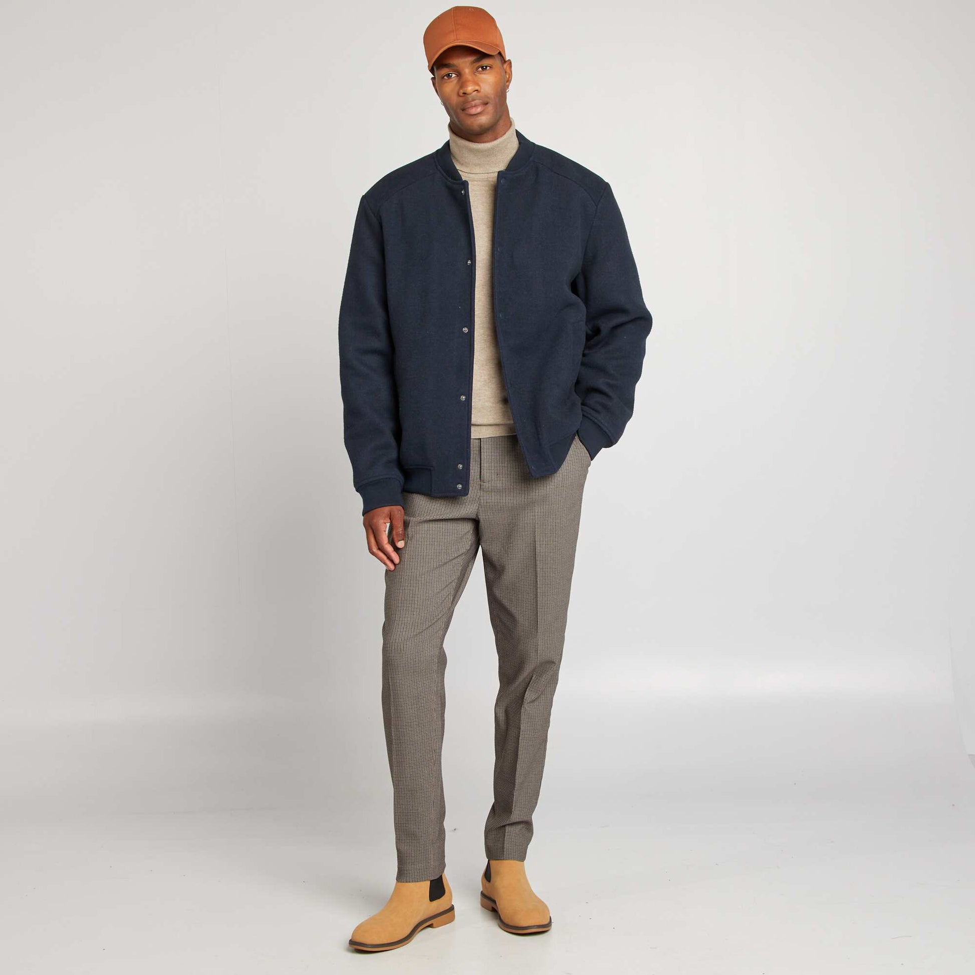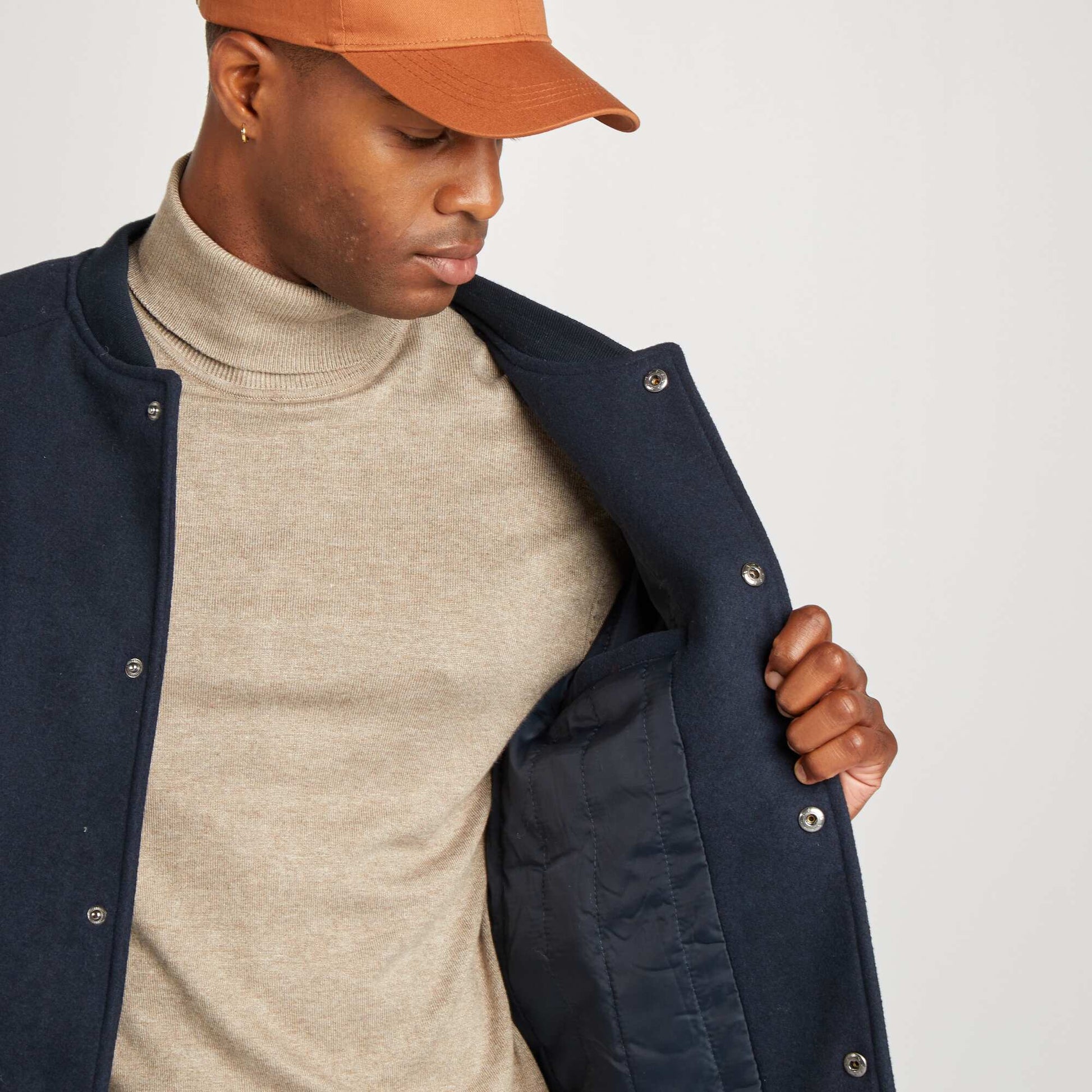 Un blouson chaud et l gant pour monsieur ! - Blouson aviateur - Contient de la laine - Ouverture pressions devant - Finitions bords-c tes sur le col et les manches - 2 poches raglan - Matelassage l'int rieur - Couleur unie - Longueur du dos : 72 cm - Notre mannequin porte une taille L et mesure 1m85