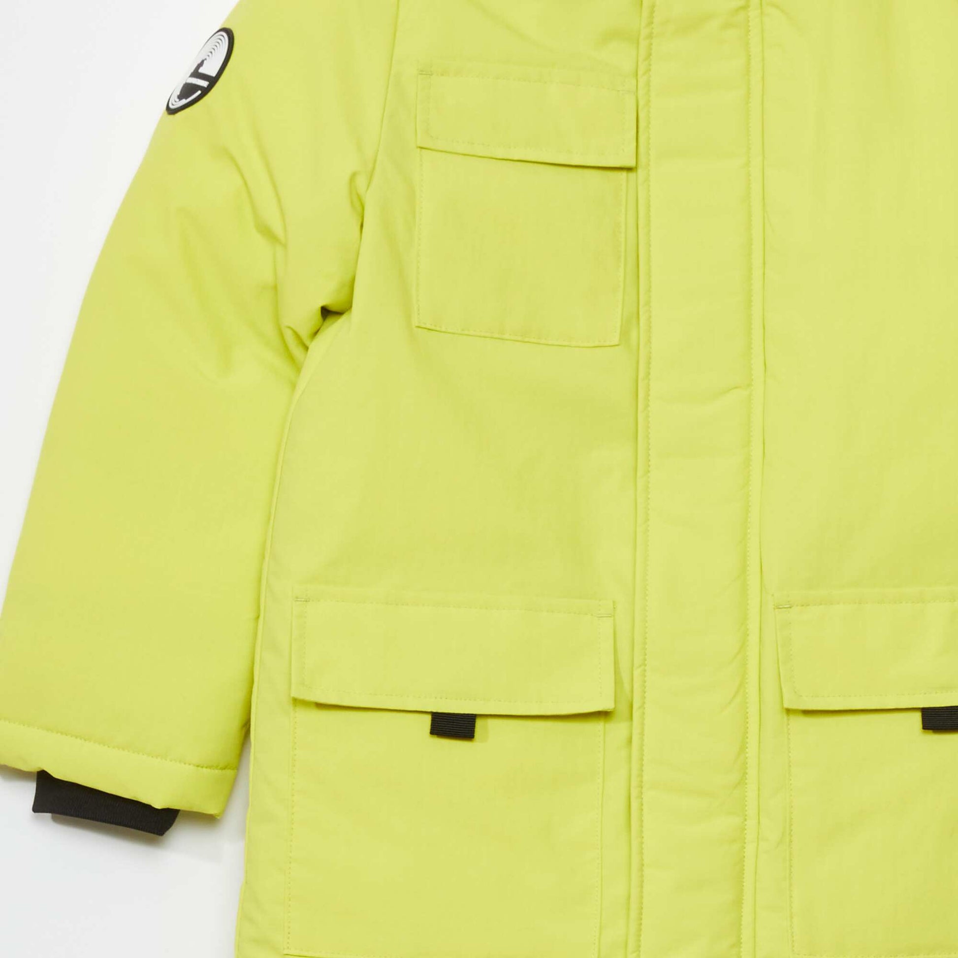 La s lection + : Un incontournable pour s'assurer qu'il est bien au chaud, m me pendant les jours les plus froids de l'hiver : la parka d perlante douillette doublure fourr e. M me en cas de coup de frais ou d averse, voil une parka parfaite, d perlante et tendance ,-) - Parka - Col capuche - Manches longues avec base lastiqu e - Ouverture pressionn e + zipp e sous patte - 1 poche poitrine - Prot ge menton - 2 poches rabat devant