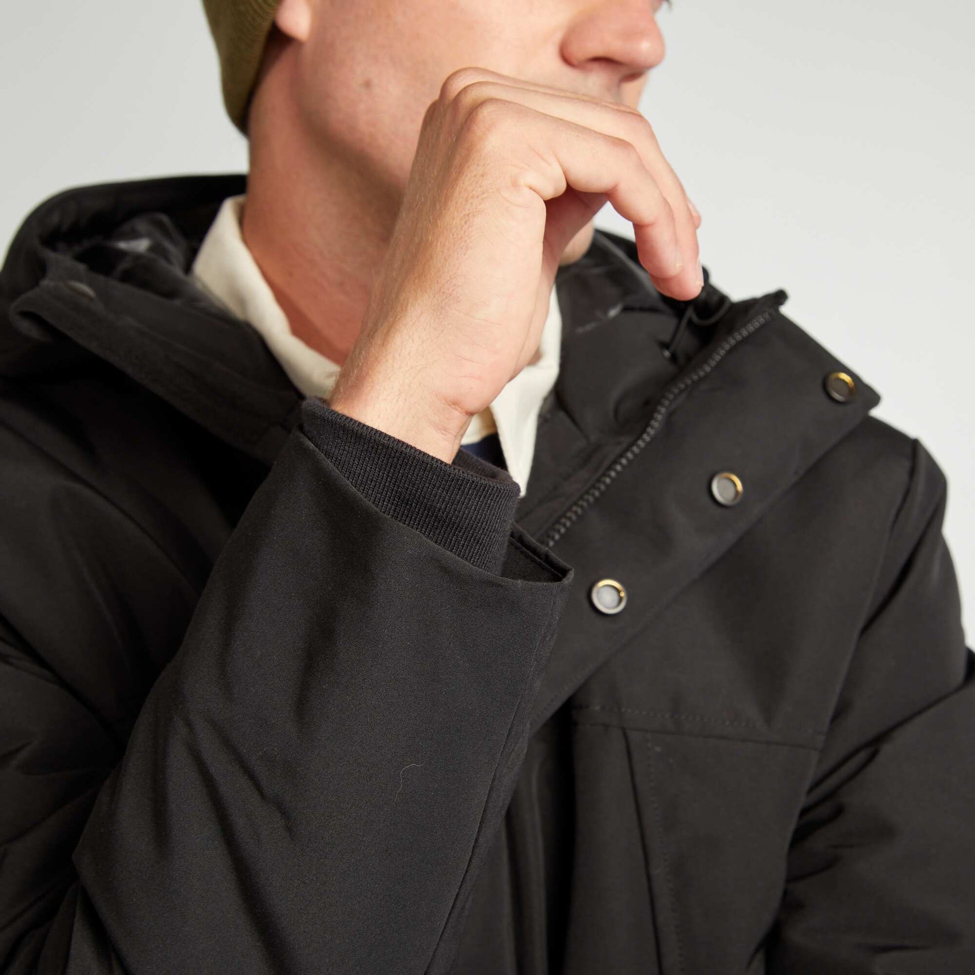 Cette grosse pi ce est con ue pour vous offrir chaleur et confort tout l'hiver. - Parka paisse capuche - Coupe mi-longue - Mati re d perlante - Col montant - Ouverture zipp e + pressions - Manches longues - Doublure en polaire - 2 poches plaqu es - 2 poches rabat avec pressions - Poignets avec finitions bords-c tes - Longueur du dos : 82 cm - Notre mannequin porte une taille M et mesure 1m89