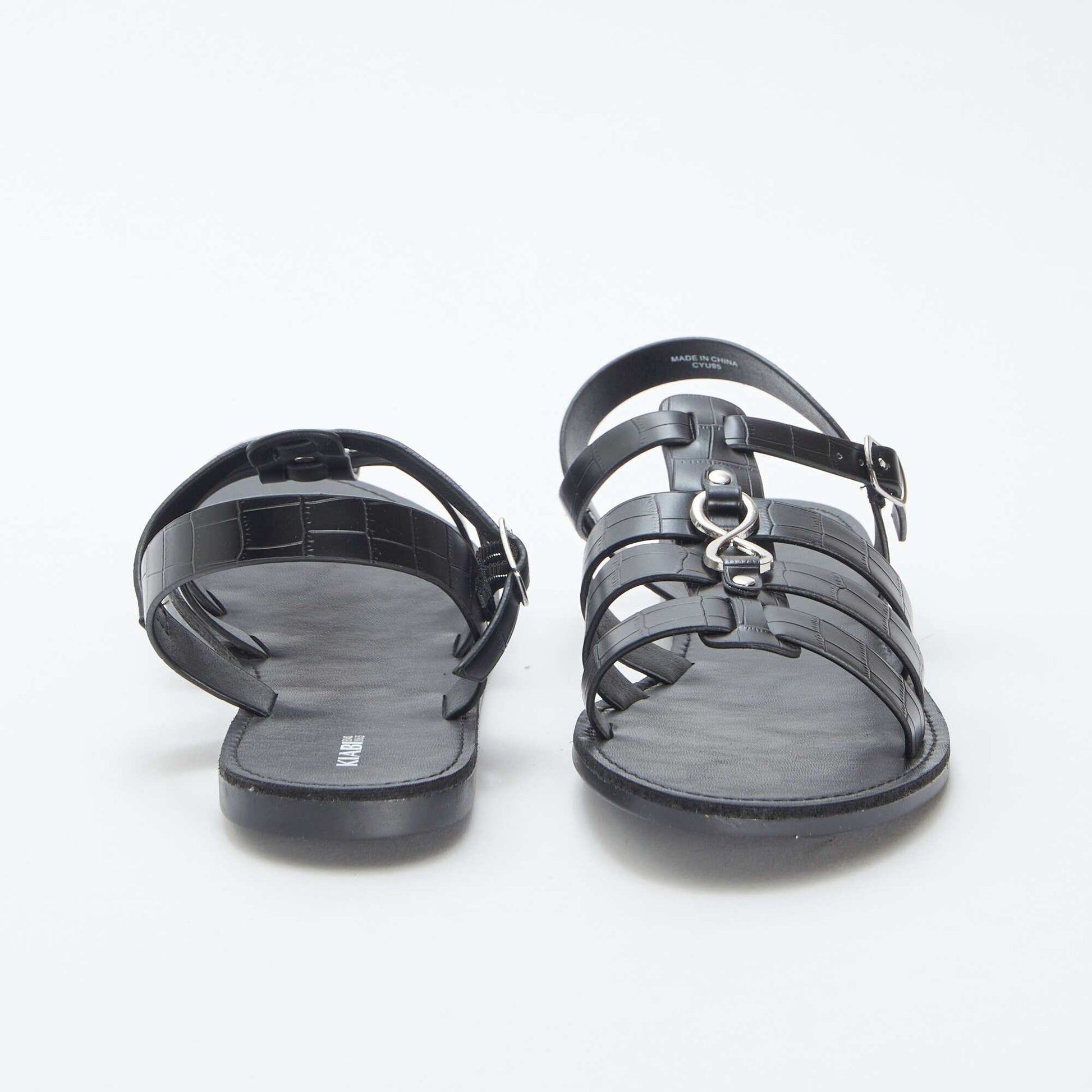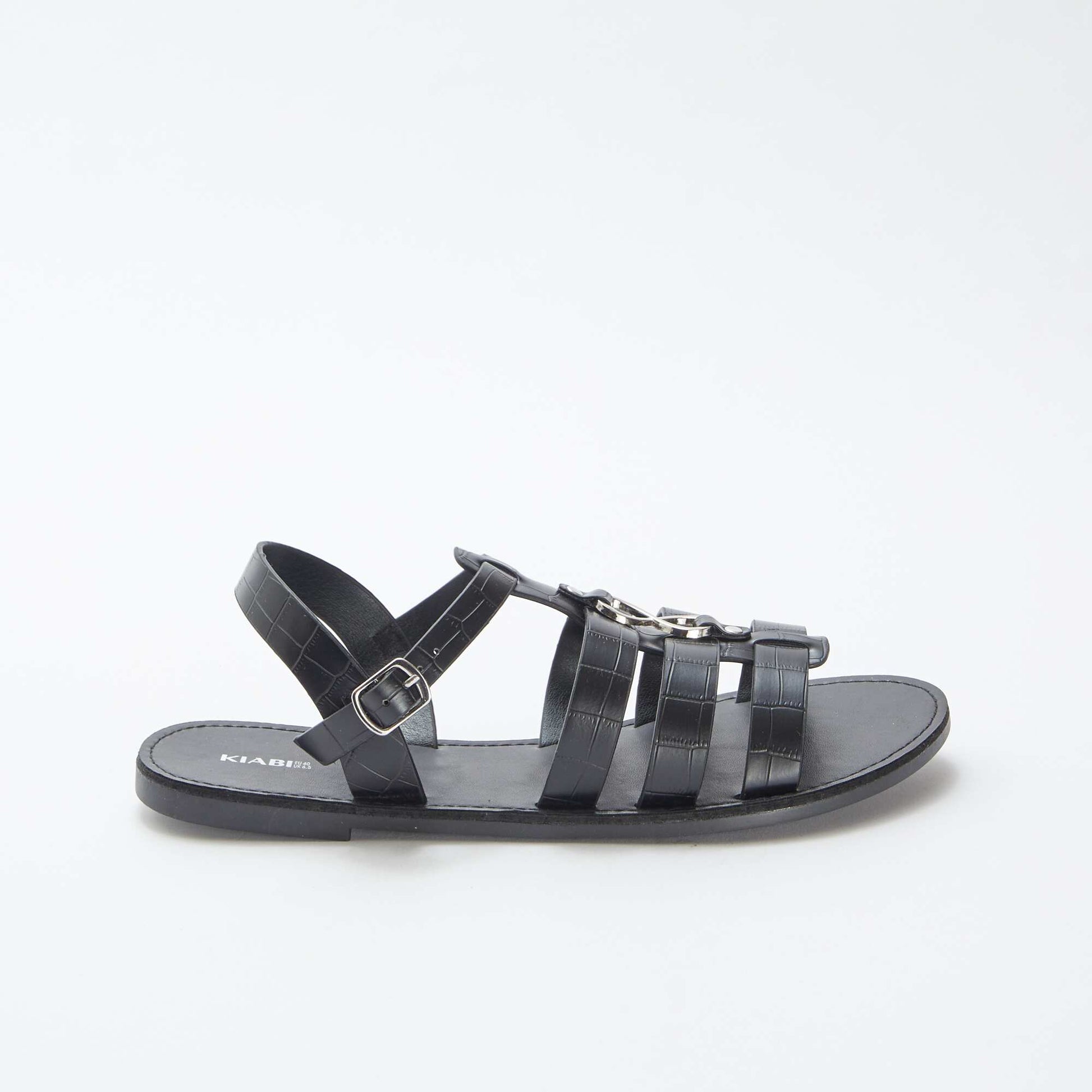 Ces sandales sobres ont une touche originale qui fait toute la différence. - Sandales - 3 brides devant - Détail bijou sur les brides - Tour de cheville ajustable par boucle métallique - Semelle d'usure antidérapante