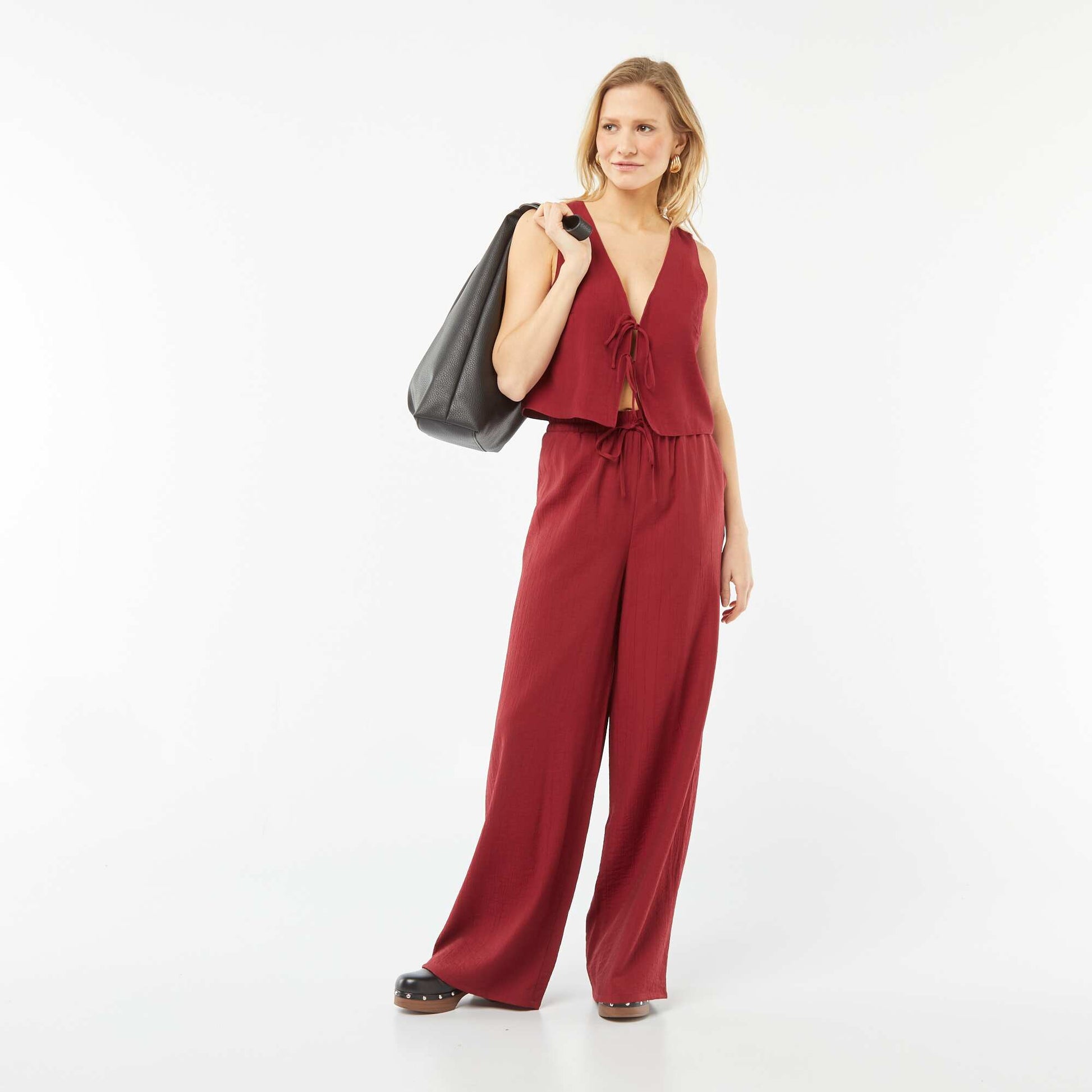 Le gilet sans manches avec les nœuds qui lui apporte cette touche unique ! - Gilet sans manches - Maille crêpée - Col en V - Liens à nouer devant - Longueur dos : 43 cm environ - Notre mannequin porte une taille S et mesure 1m75