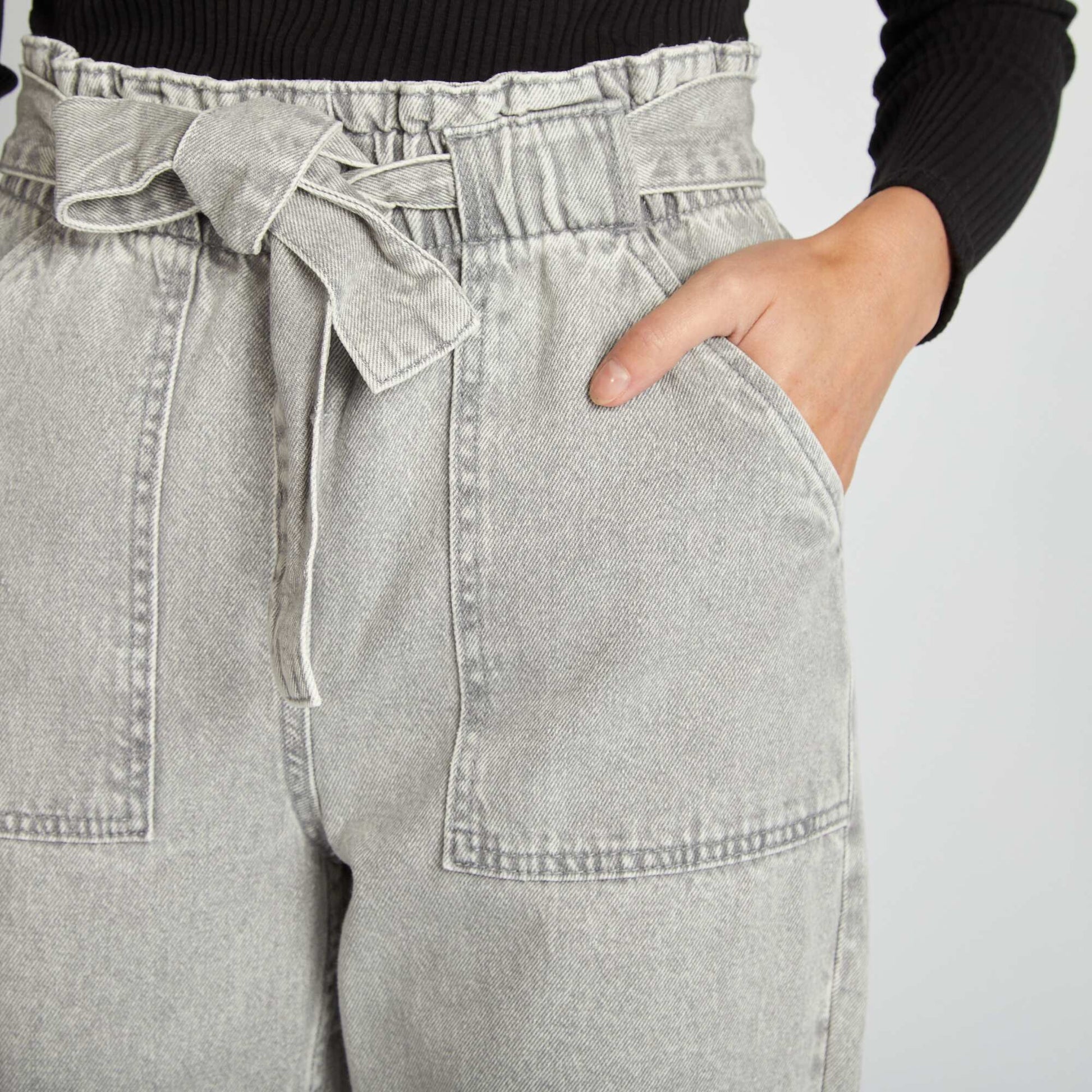 Sa coupe flatteuse et son style vintage apportent une touche r tro. - Pantalon denim - Coupe mom - 2 larges poches devant - Taille smock e - 2 poches plaqu es au dos - Ceinture nou e devant - Surpiq res contrast es - Longueur entrejambe : 70 cm environ - Largeur bas de jambe : 17 cm environ - Notre mannequin porte une taille 36 et mesure 1m75