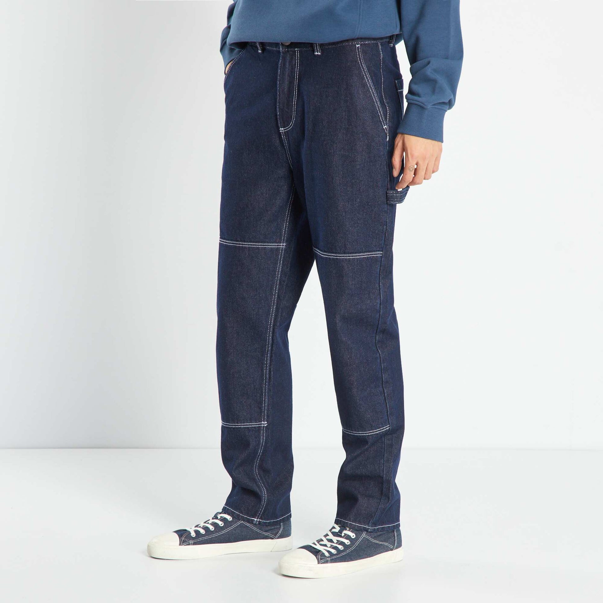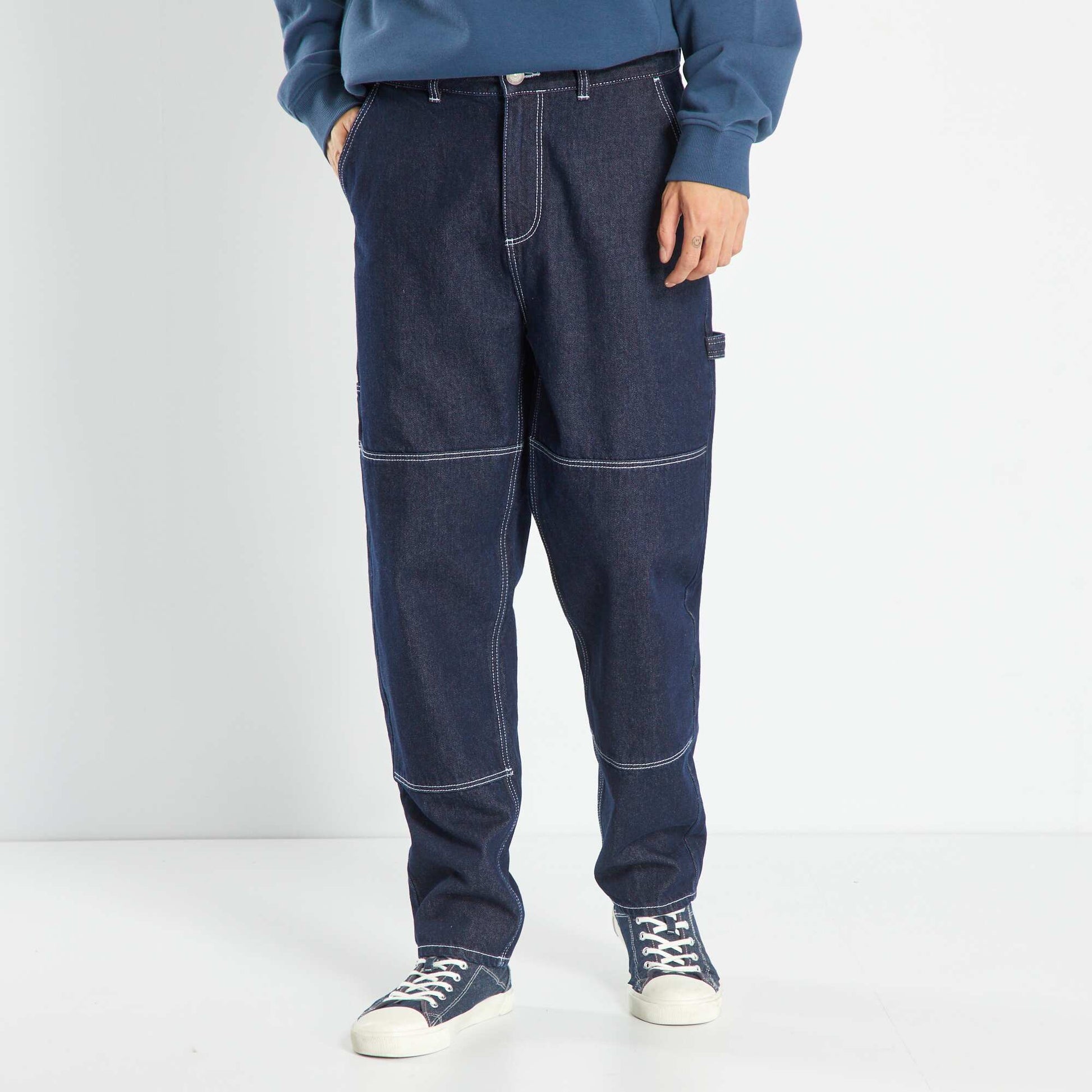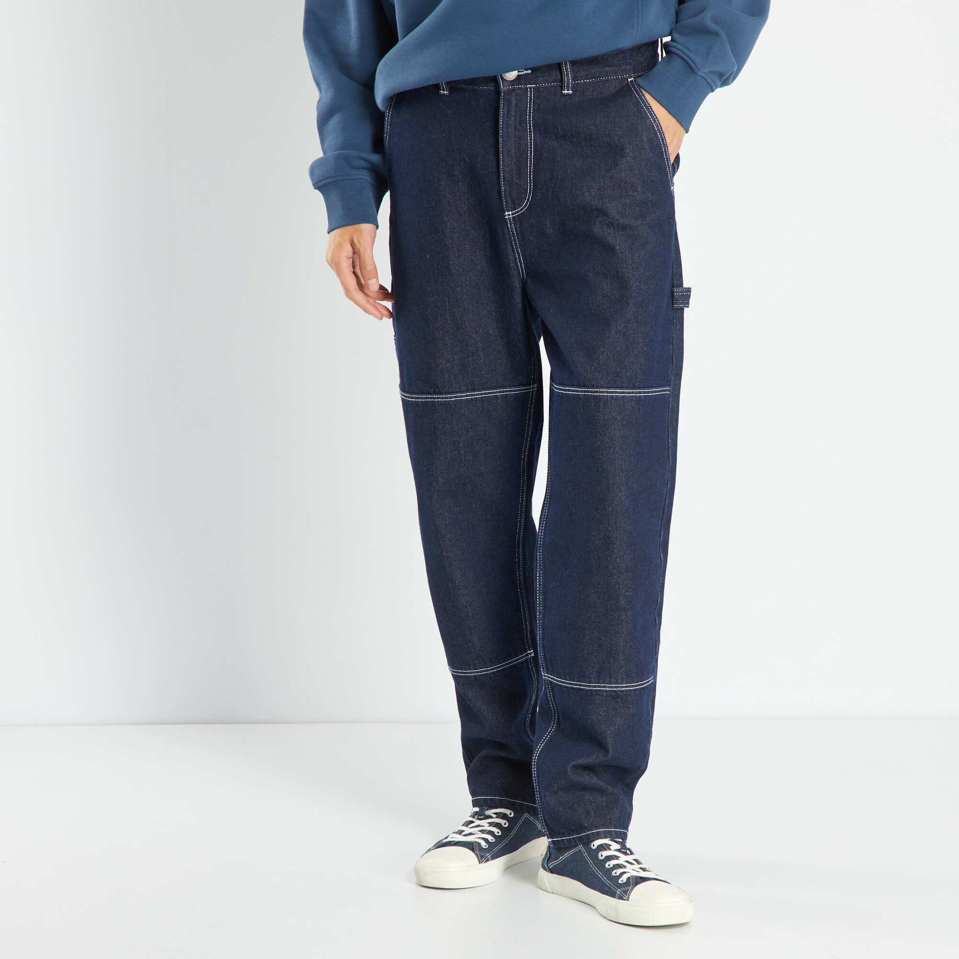 Un jean avec une coupe large. Tendance et styl , parfait pour votre look de demain ,-) - Jean 5 poches - Taille standard - Passants pour ceinture - Ouverture boutonn e + zipp e sous patte - 2 poches devant + 1 ticket - 2 poches au dos - Empi cement sur le c t - Longueur entrejambe : 76 cm environ - Largeur bas de jambe : 19 cm environ - Notre mannequin porte une taille M et mesure 1m87