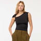 Le chic à portée d'épaule avec ce tee-shirt twisté au détail doré. - Tee-shirt cintré - En microfibre - Près du corps - Sans manches - Encolure asymétrique - Bijou doré sur épaule droite - Côté gauche twisté - Longueur dos : 50 cm environ - Notre mannequin porte une taille S et mesure 1m70