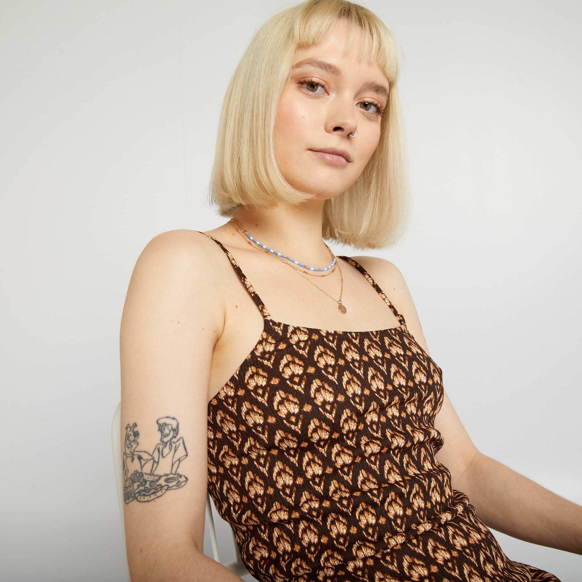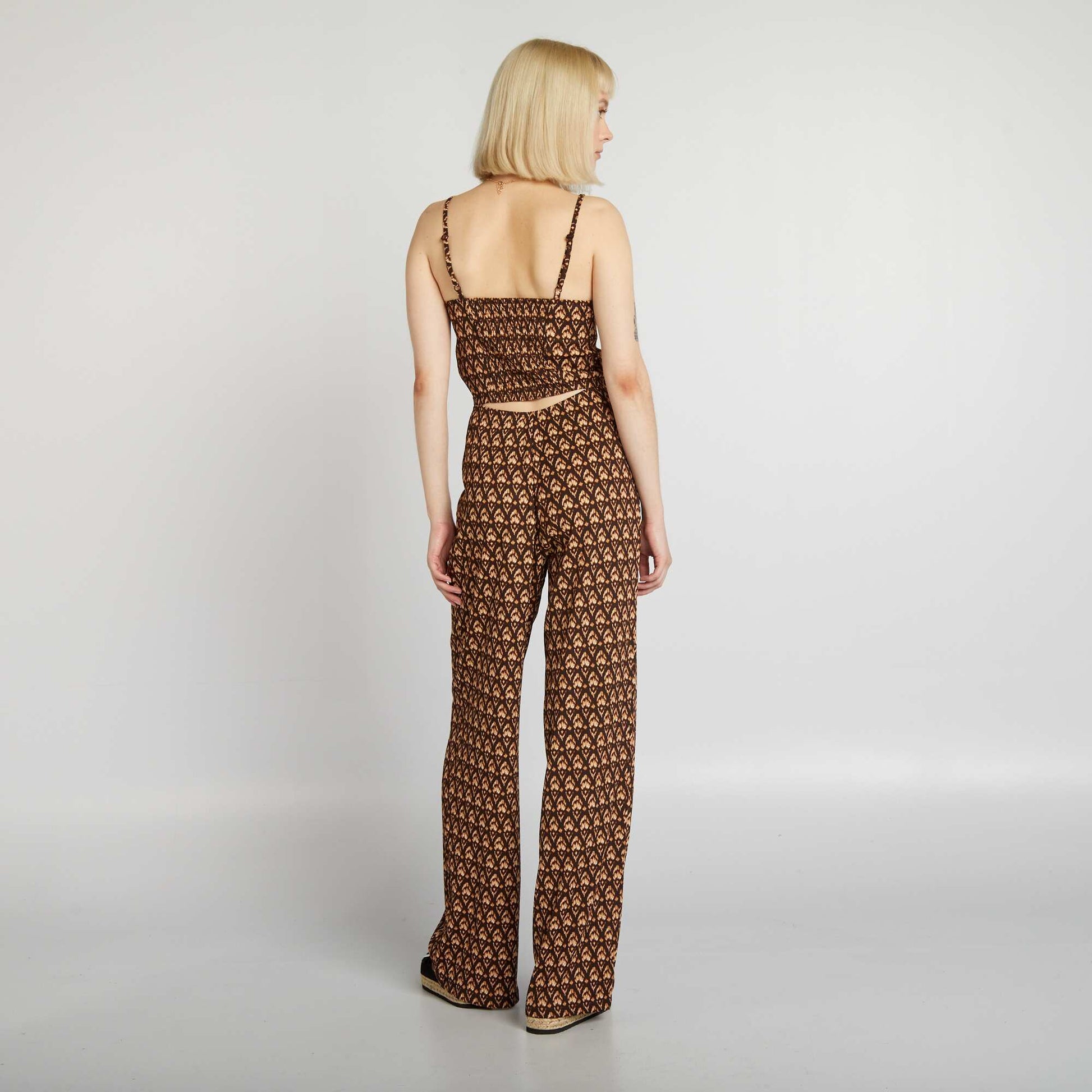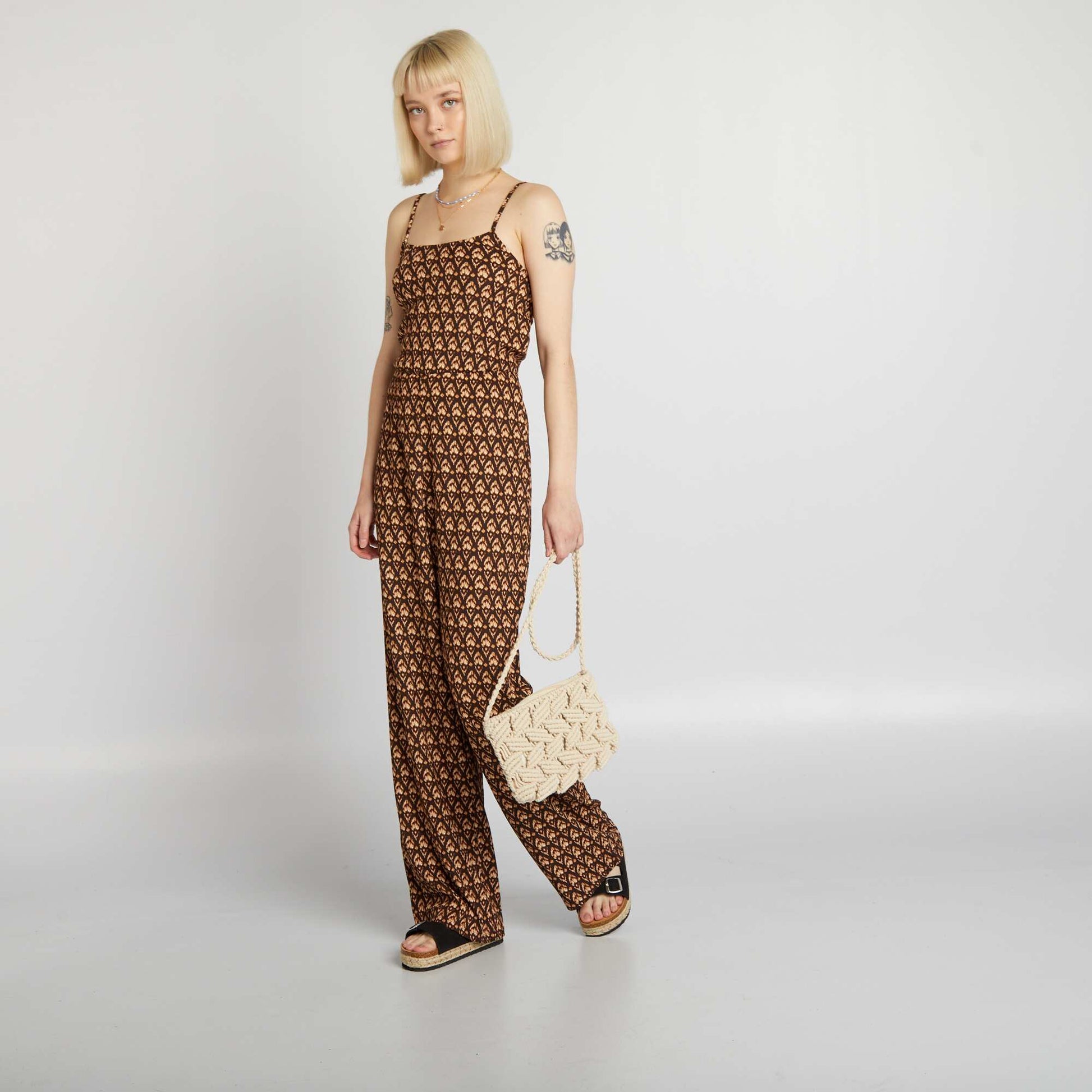 Combinaison fluide et large fines bretelles Marron