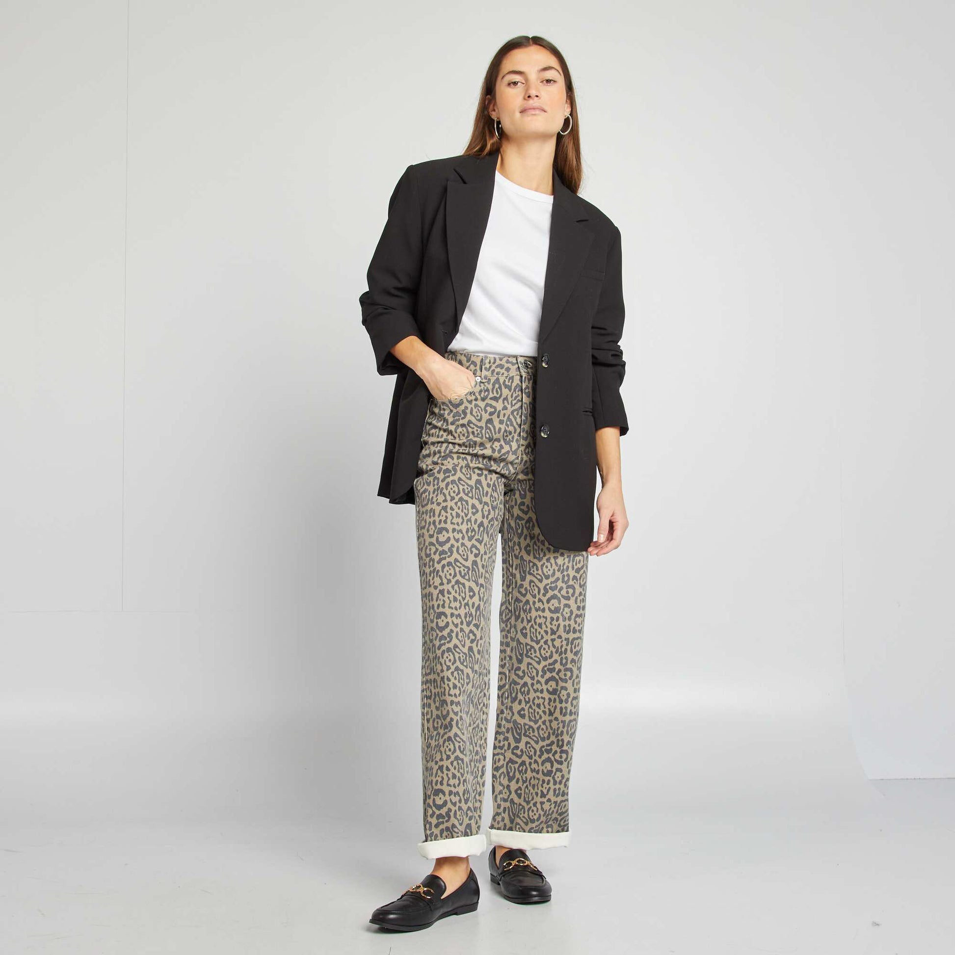 Osez l'imprimé sauvage ! Ce jean léopard audacieux apporte une touche de glamour et de rebelle à votre look, pour un style unique et irrésistible. - Jean imprimé léopard - Ouverture zippée et boutonnée - Passants pour ceinture - 5 poches - Coupe droite (straight) - Longueur entrejambe : 78 cm - Largeur bas de jambe : 23 cm - Notre mannequin porte une taille 36 et mesure 1m75