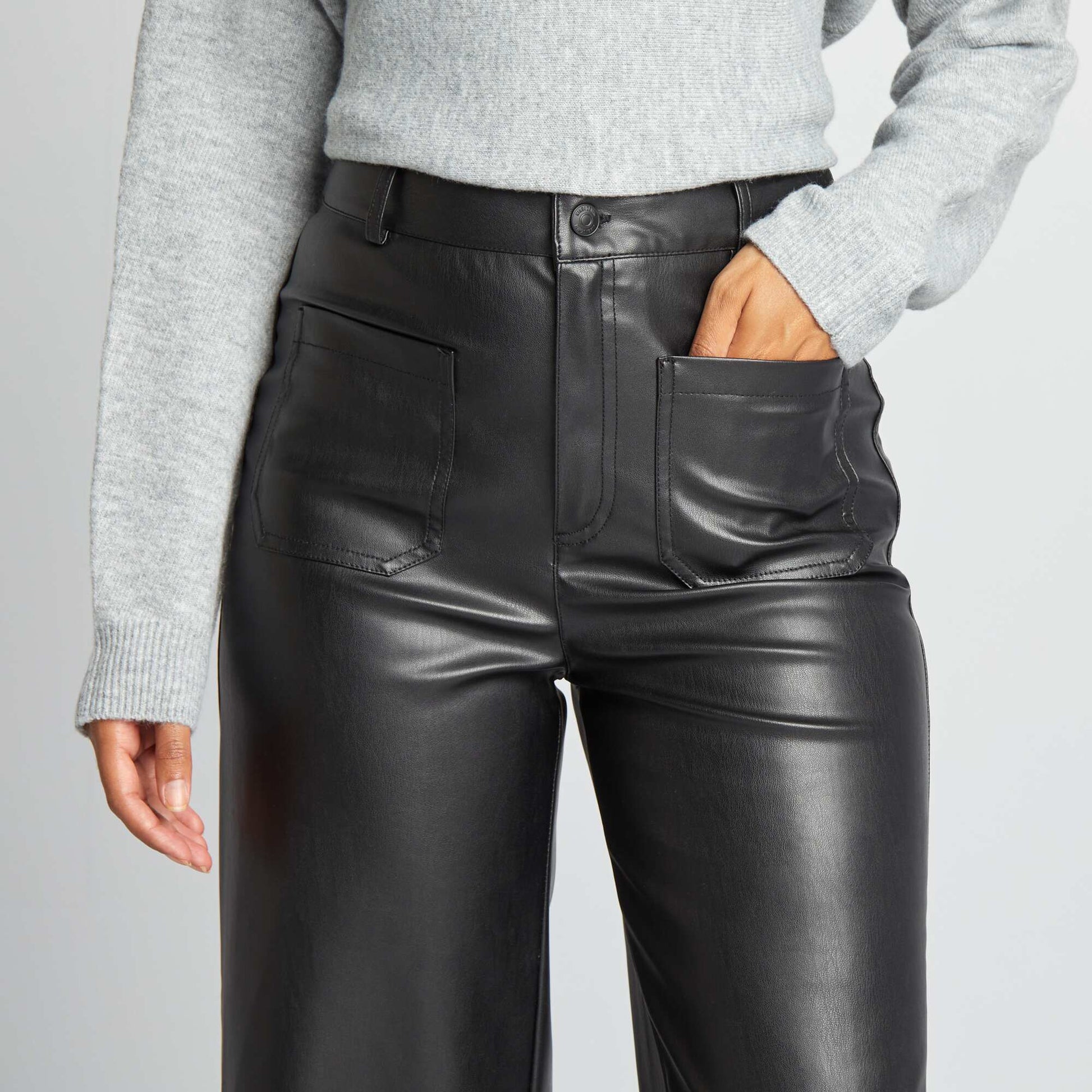 Le pantalon ultra tendance que vous allez adorer port pendant la mi-saison. Sa coupe droite est id ale pour toutes les morphologies. - Pantalon en simili - Coupe droite - Ouverture zipp e + bouton - Passants pour ceinture - 2 poches devant - Longueur entrejambe : 66 cm - Largeur bas de jambe : 22 cm - Notre mannequin porte une taille 36 et mesure 1m75