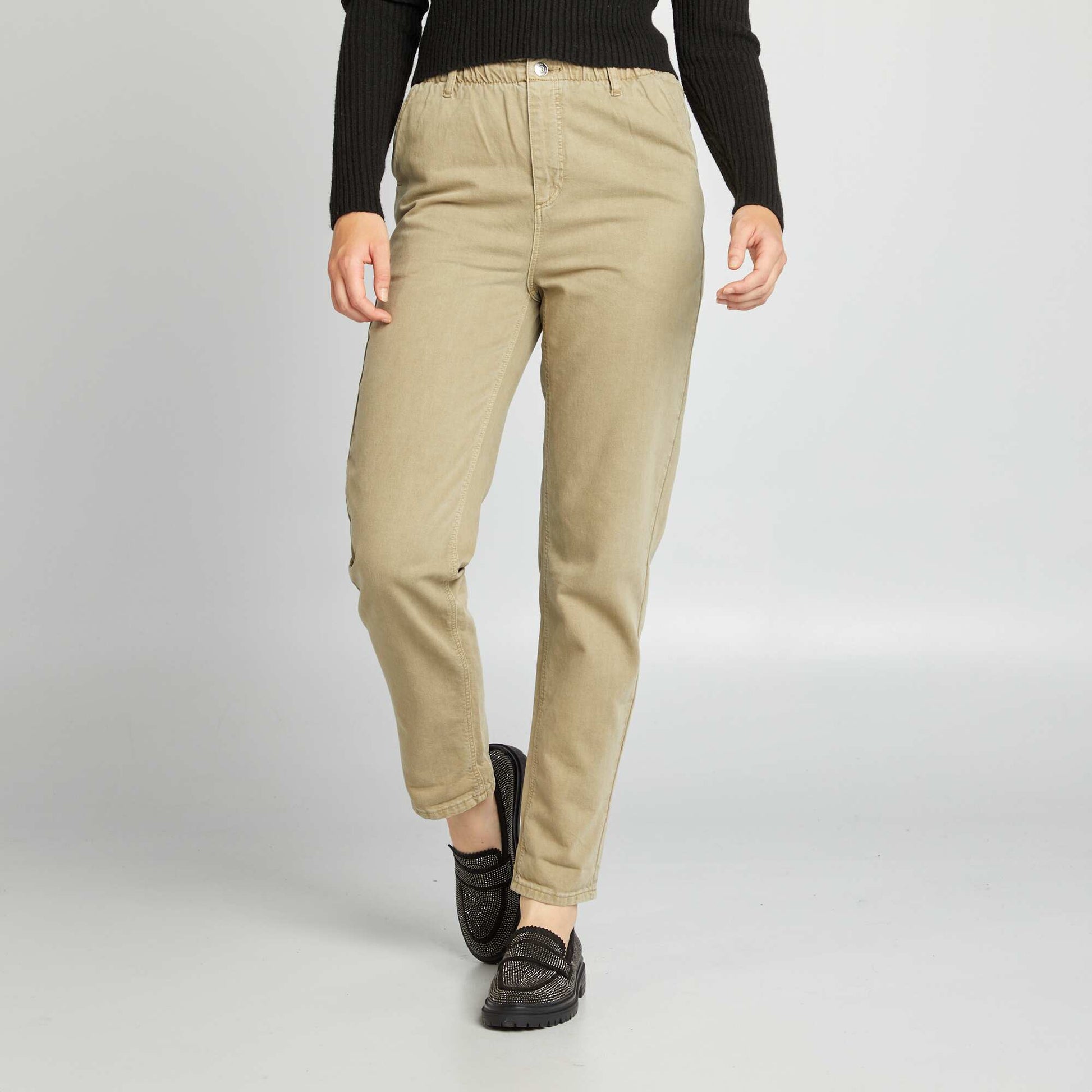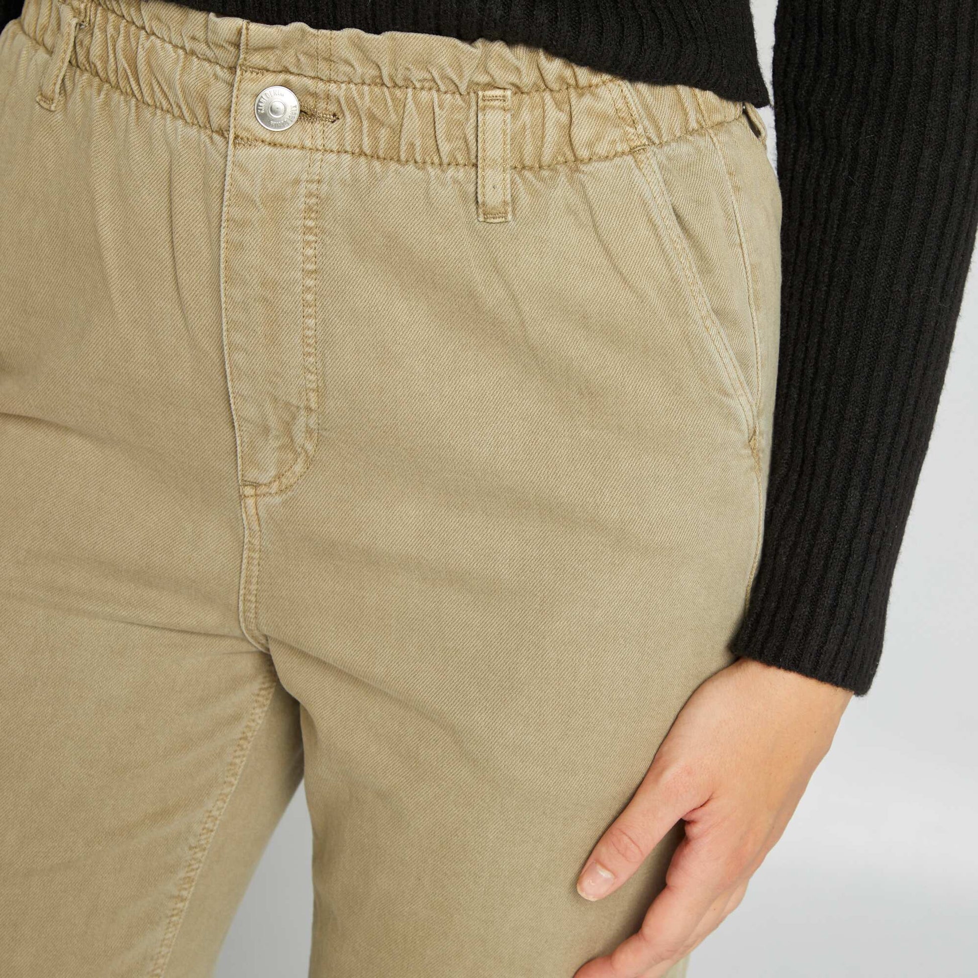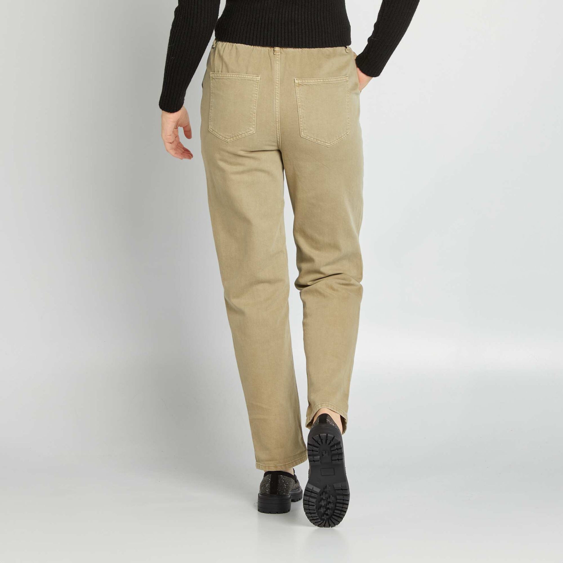 Roulez la base pour apporter un look d contract votre tenue ! - Pantalon en twill - Coupe regular / droite - 2 poches - 2 poches au dos - Ouverture boutonn e et zipp e - Passants ceinture - Longueur entrejambe : 70 cm environ - Largeur bas de jambe : 18 cm environ - Notre mannequin porte une taille 36 et mesure 1m75