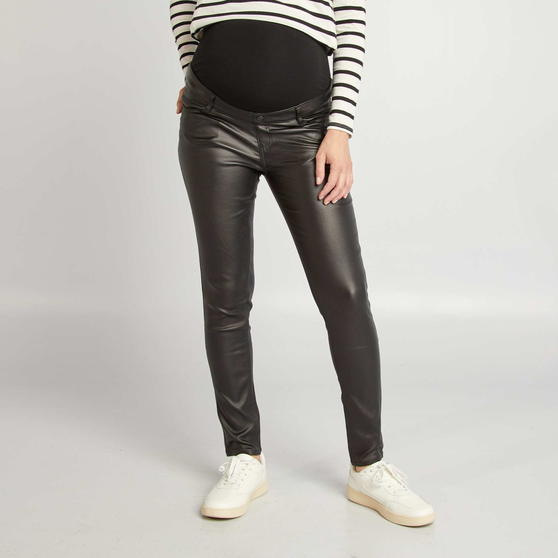 Confort optimal, coupe ajust e, et style tendance sont au rendez-vous pour toutes les futures mamans. - Pantalon - Coupe skinny - Mati re stretch - Large bandeau lastique - Ouverture boutonn e - Couleur unie - Notre mannequin porte une taille 36 et mesure 1m75