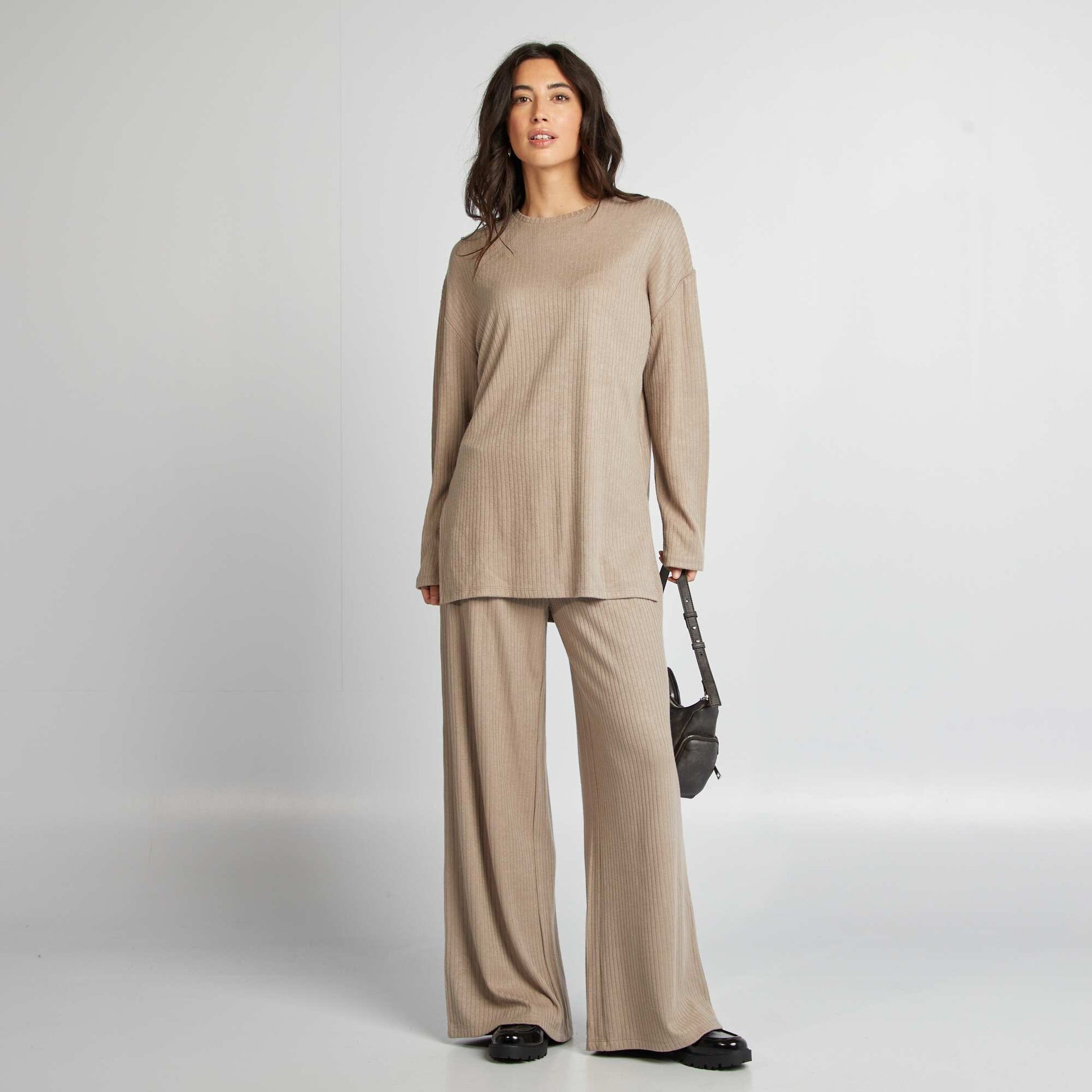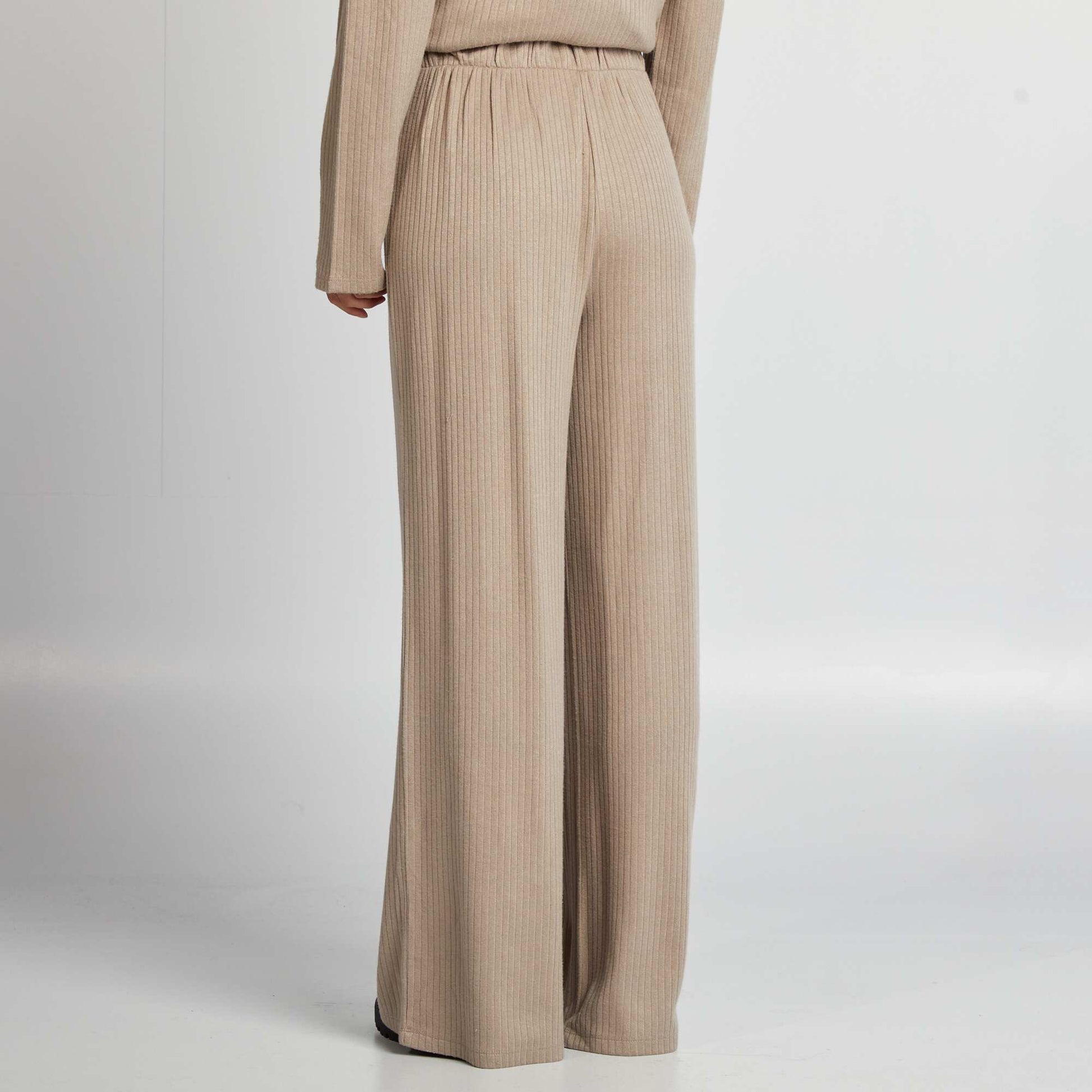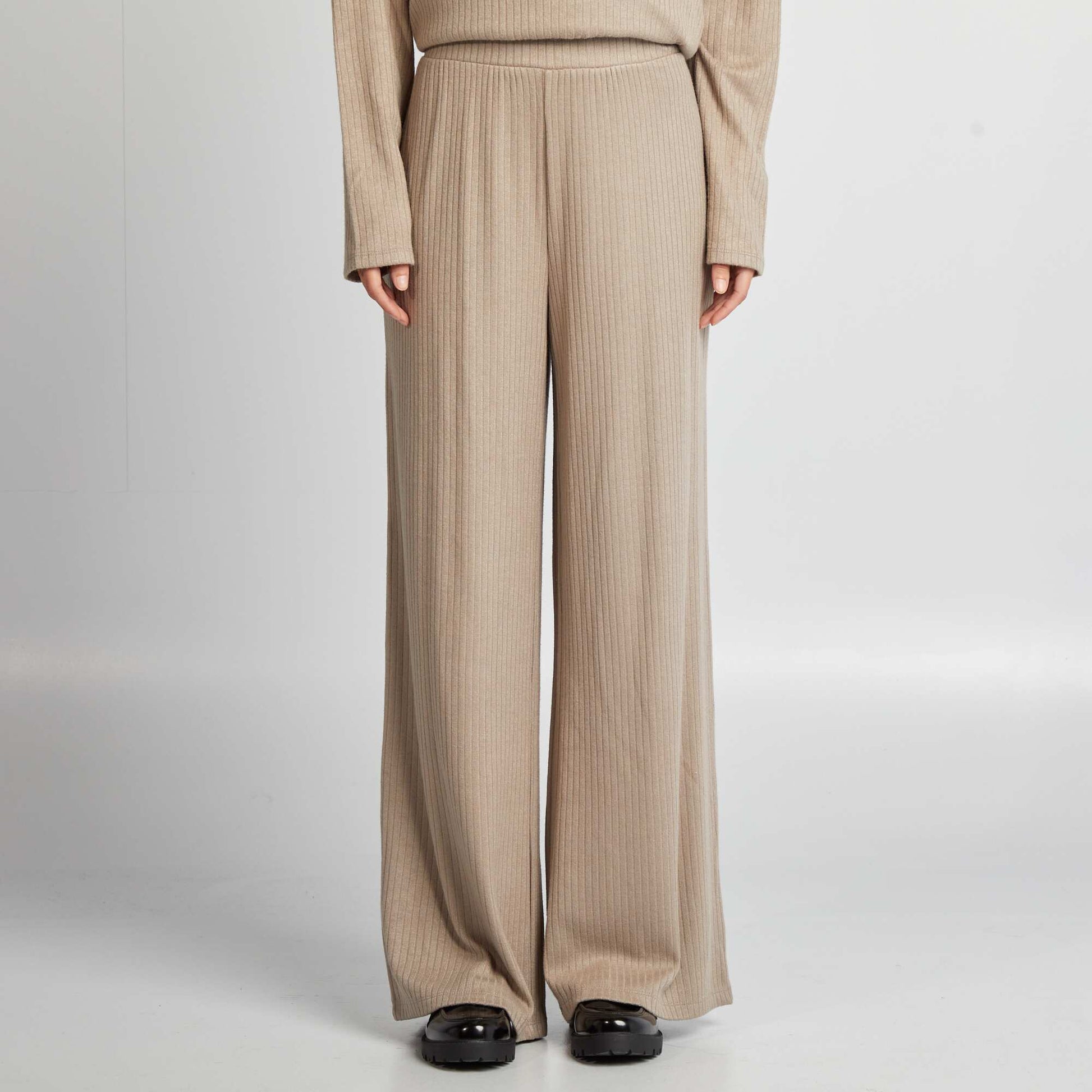 Confort maximal avec ce pantalon large c tel ! - Pantalon large c tel - Taille lastiqu e - Longueur entrejambe : 75 cm environ - Largeur bas de jambe : 34 cm environ - Notre mannequin porte une taille M et mesure 1m75
