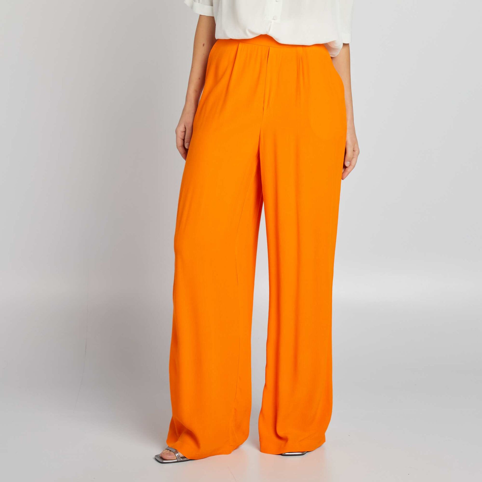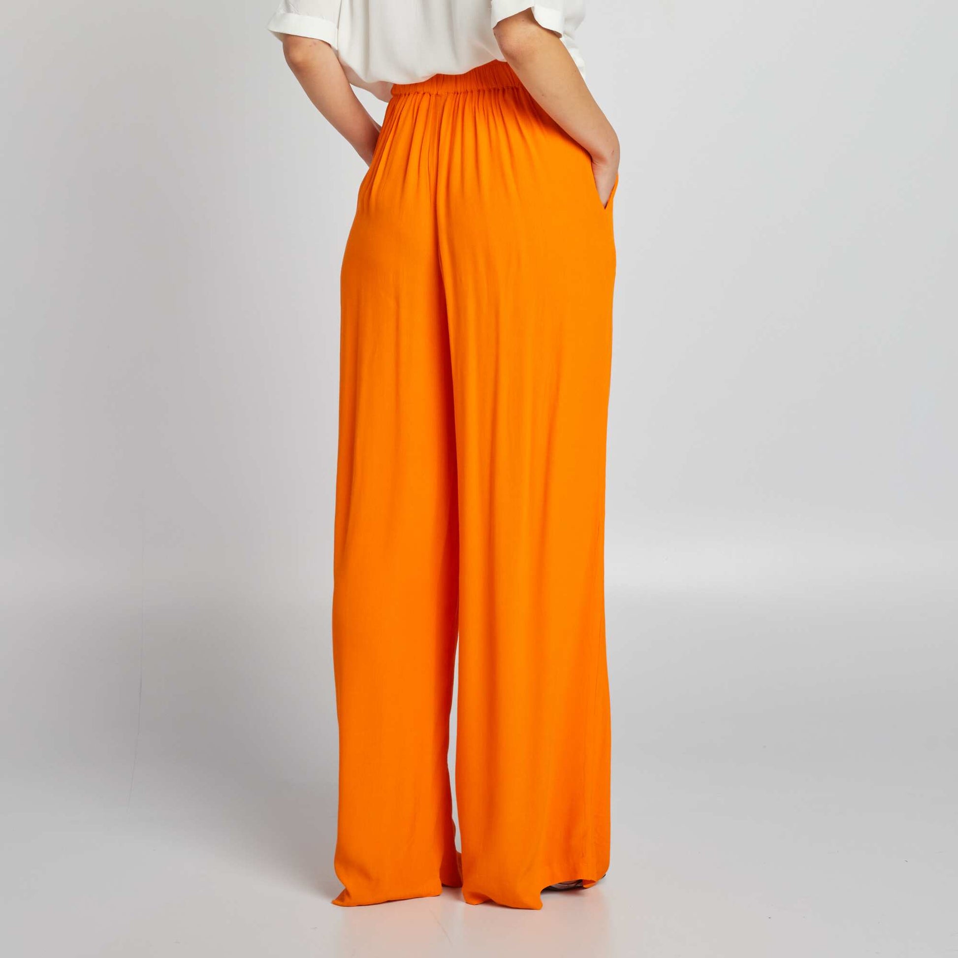 Pantalon large en cr pe Orange