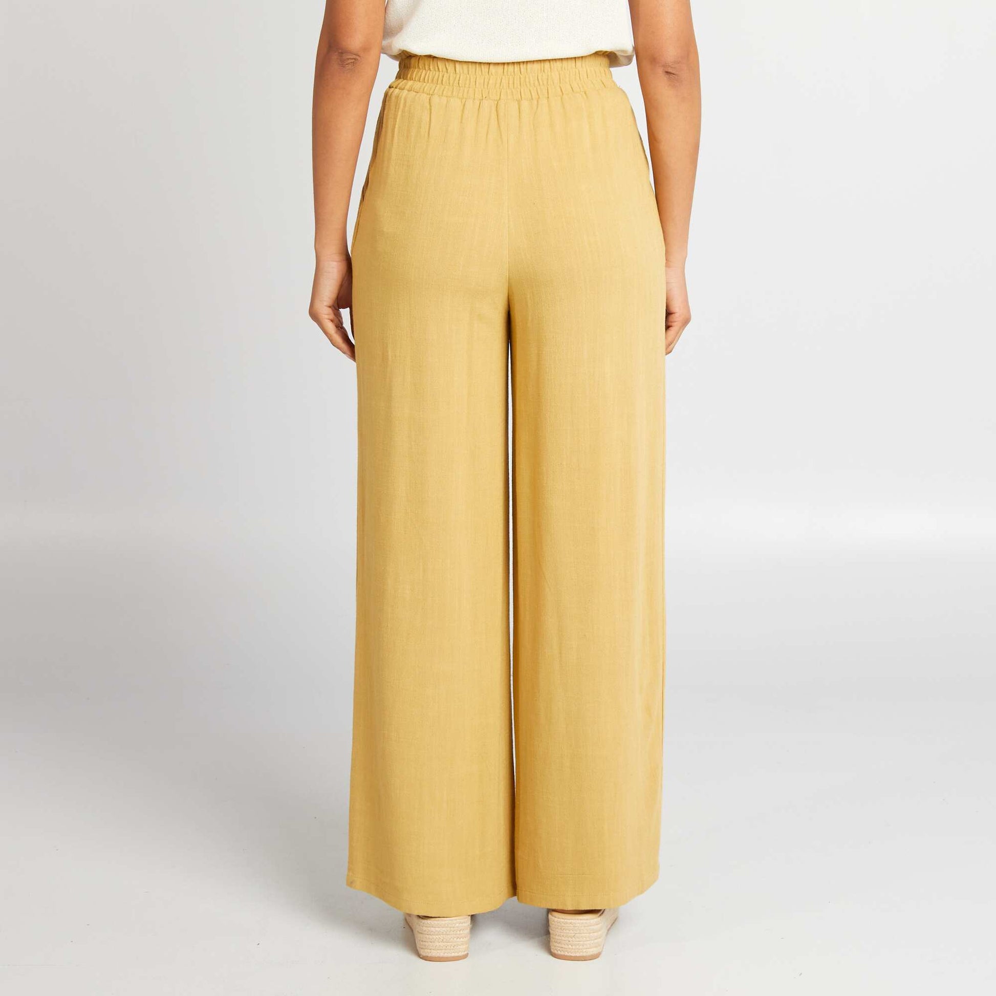 Sublimez votre style avec notre pantalon large en lin m lang . L ger et a rien, il pouse gracieusement vos courbes tout en vous offrant un confort absolu. - Pantalon large - En lin m lang - Large taille smock e - 2 poches plaqu es - Longueur entrejambe : 78 cm environ - Largeur bas de jambe : 32 cm environ - Notre mannequin porte une taille M et mesure 1m75
