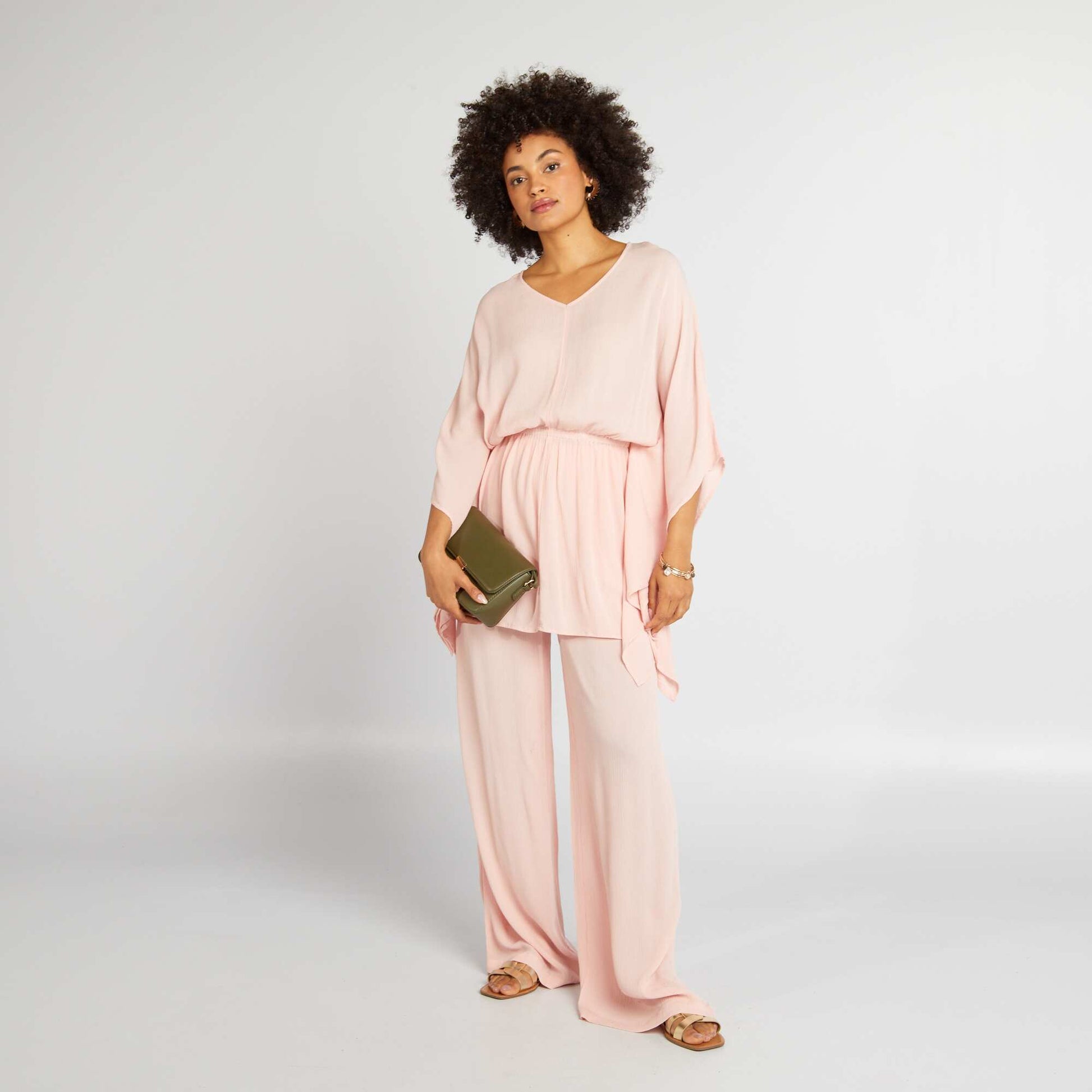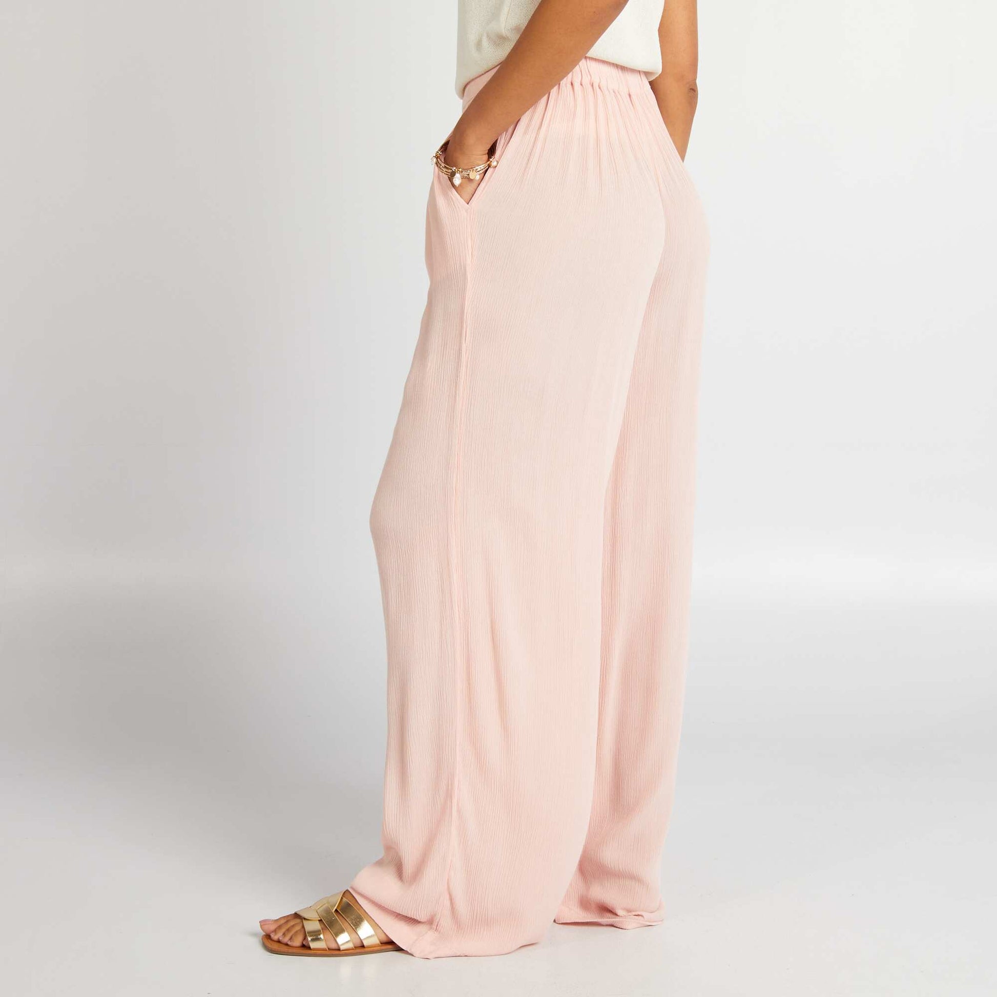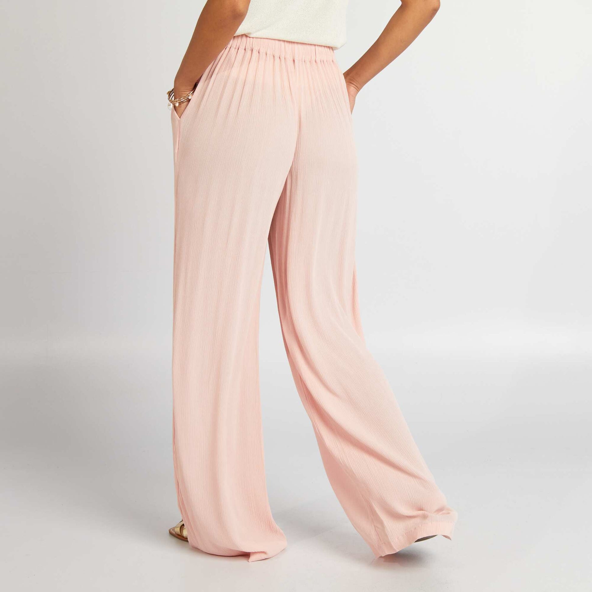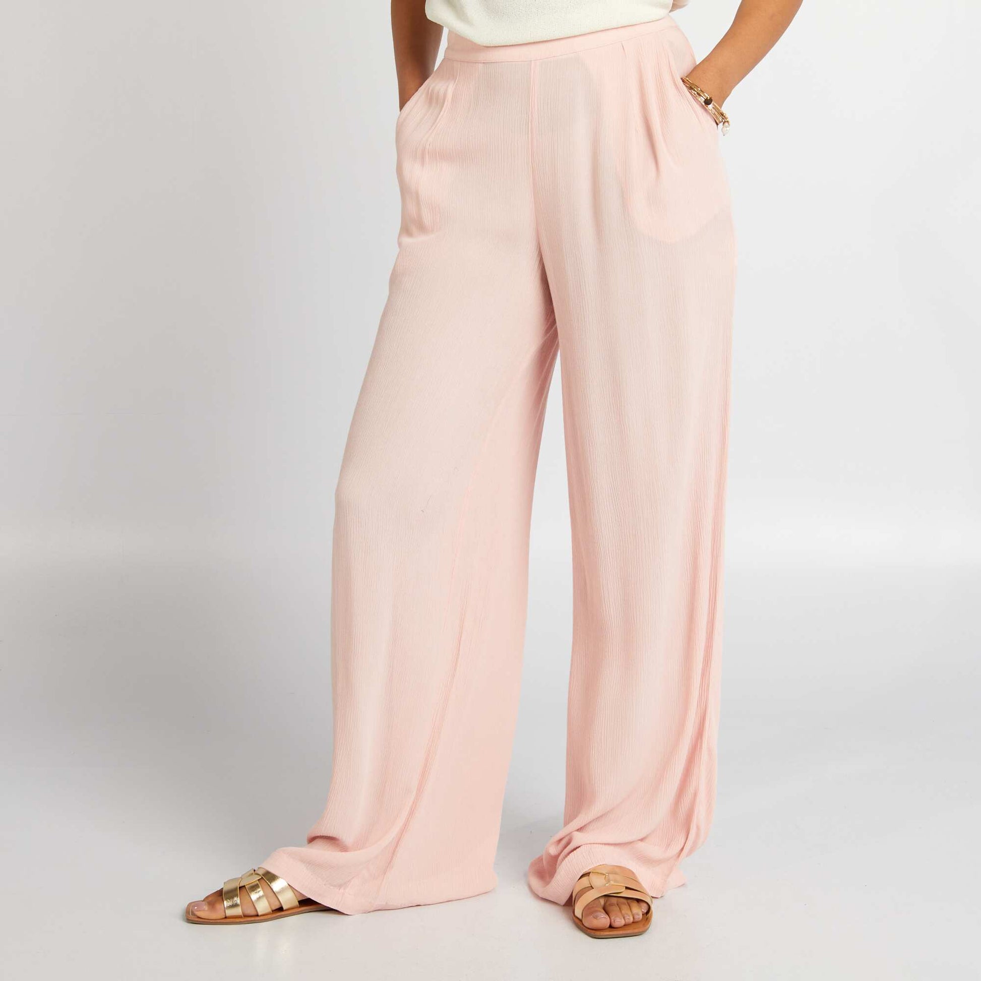 Plut t uni ou imprim ? avec ce pantalon vous avez le choix. - Pantalon large en maille cr pe - Taille lastiqu e - 2 poches - Couleur unie - Longueur entrejambe : 81 cm - Largeur bas de jambe : 34 cm - Notre mannequin porte une taille M et mesure 1m75