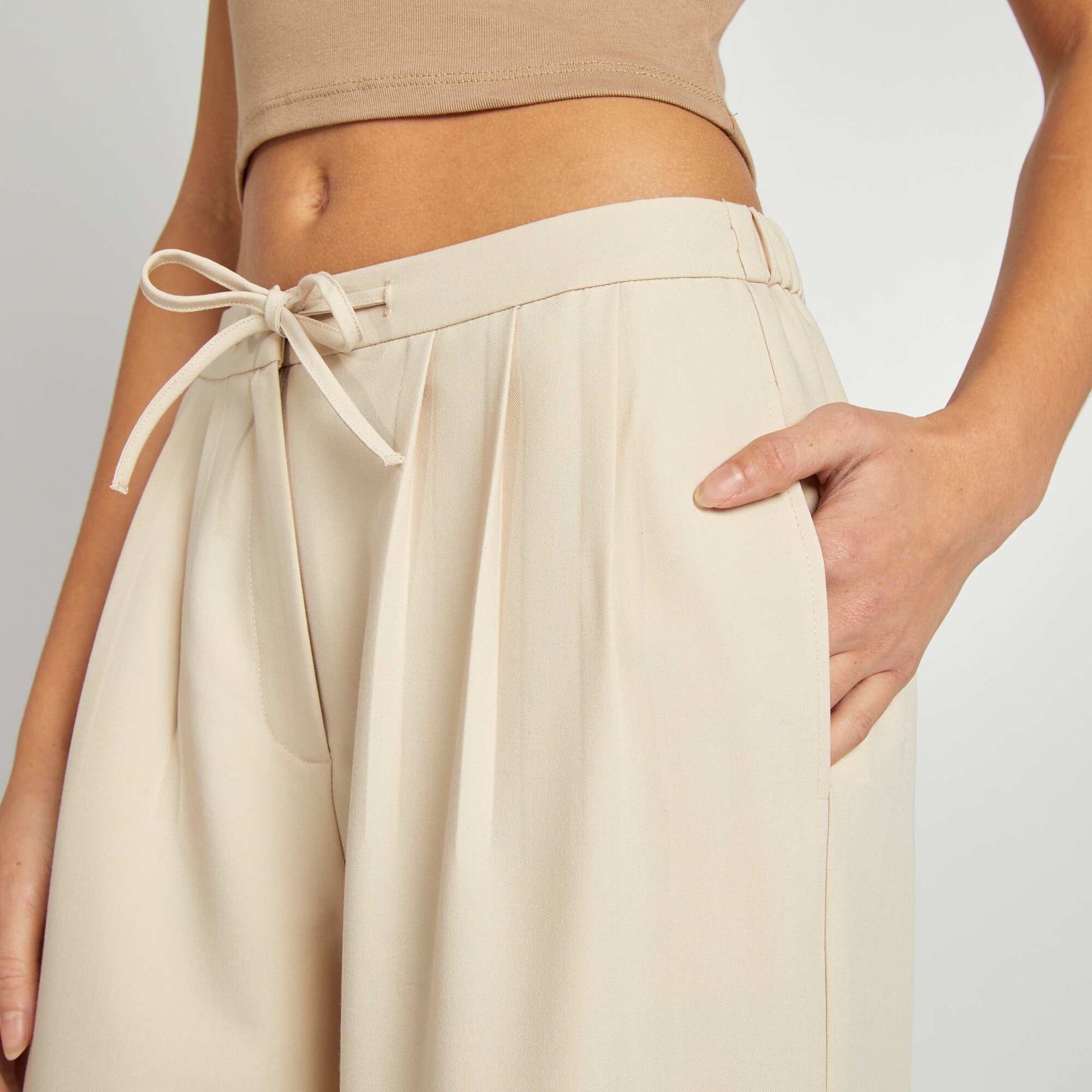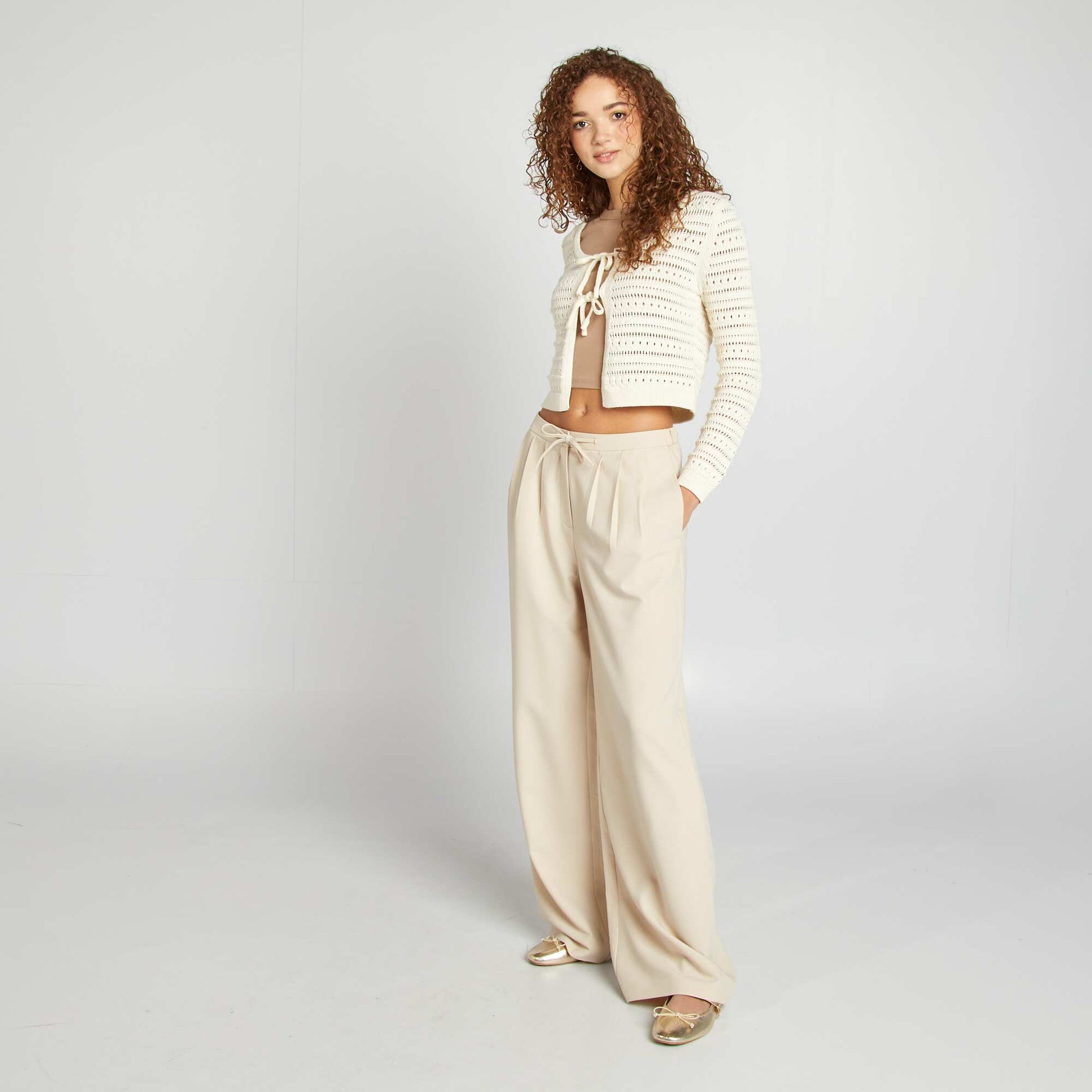 Pour un look à la fois confortable et raffiné ! - Pantalon large et fluide - Taille ajustable avec liens à nouer - 2 poches - Longueur entrejambe : 80 cm - Largeur bas de jambe : 30 cm - Notre mannequin porte une taille 36 et mesure 1m75