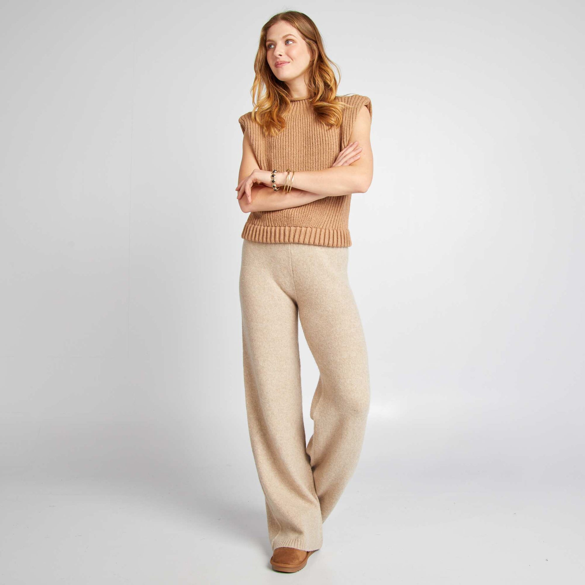 Sa coupe fluide et douce en fait un incontournable pour un look chic et relax. - Pantalon large matière pull - Taille élastiquée - 2 cordons de serrage - Longueur entrejambe : 80 cm - Largeur bas de jambe : 30 cm - Notre mannequin porte une taille S et mesure 1m76
