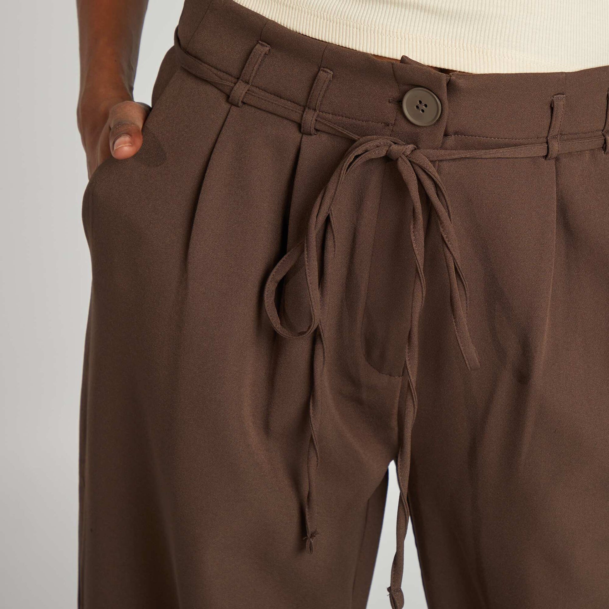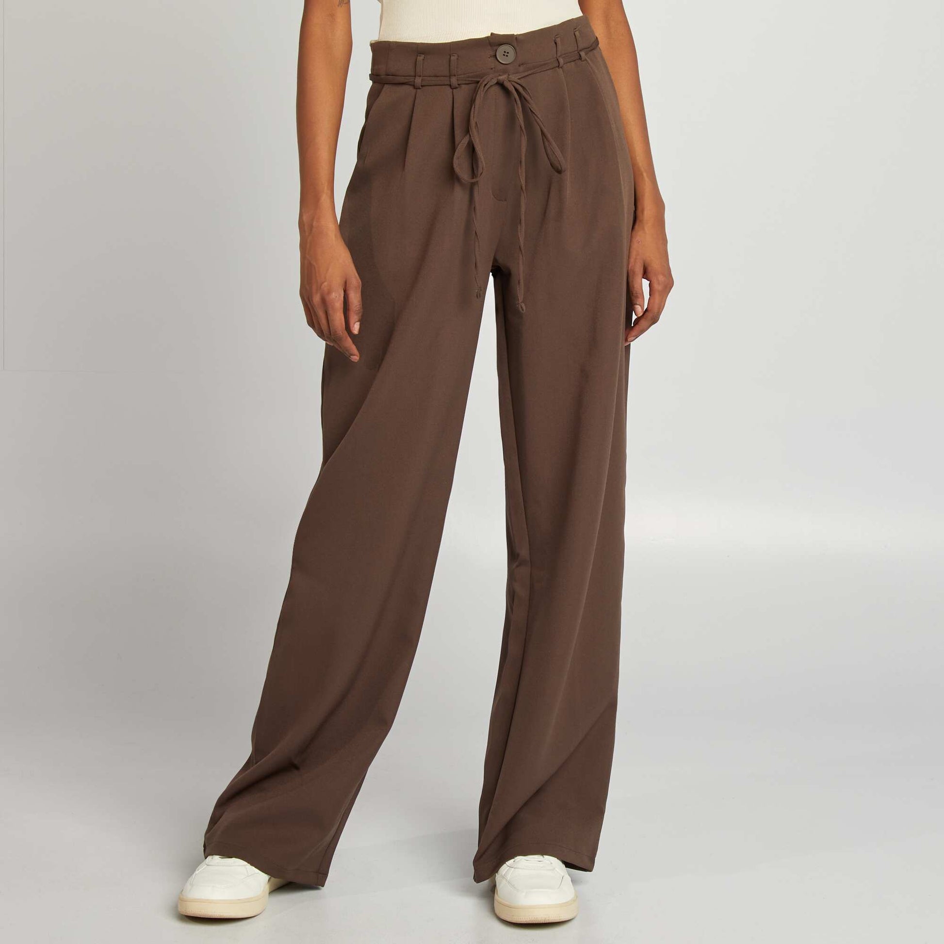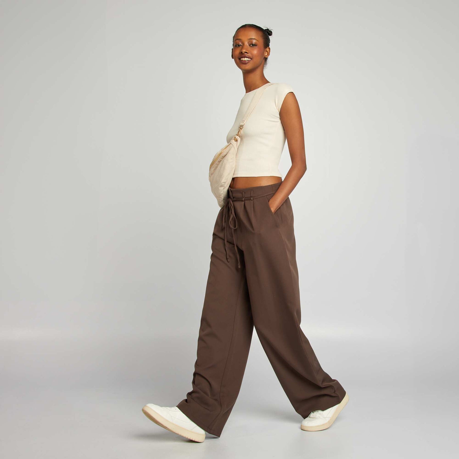 Opte pour un look décontracté-chic avec ce pantalon coupe large ! - Pantalon large - Coupe fluide - Matière stretch - Ouverture boutonnée et zippée sous patte - Fronces devant - Passants pour ceinture - Fines ceinture à nouer - Longueur entrejambe : 80 cm environ - Largeur bas de jambe : 26 cm environ - Notre mannequin porte une taille 36 et mesure 1m75