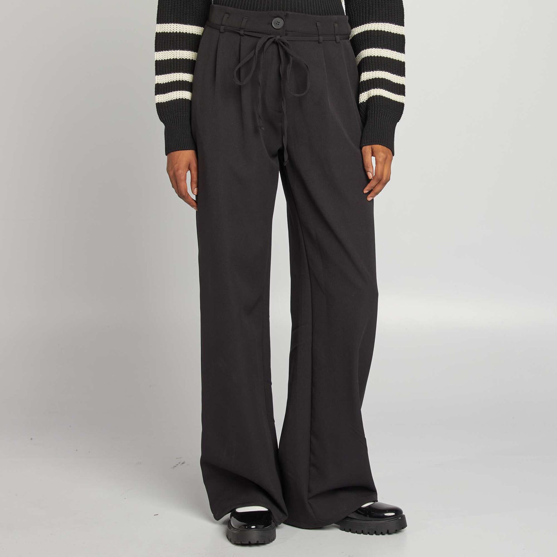 Opte pour un look décontracté-chic avec ce pantalon coupe large ! - Pantalon large - Coupe fluide - Matière stretch - Ouverture boutonnée et zippée sous patte - Fronces devant - Passants pour ceinture - Fines ceinture à nouer - Longueur entrejambe : 80 cm environ - Largeur bas de jambe : 26 cm environ - Notre mannequin porte une taille 36 et mesure 1m75