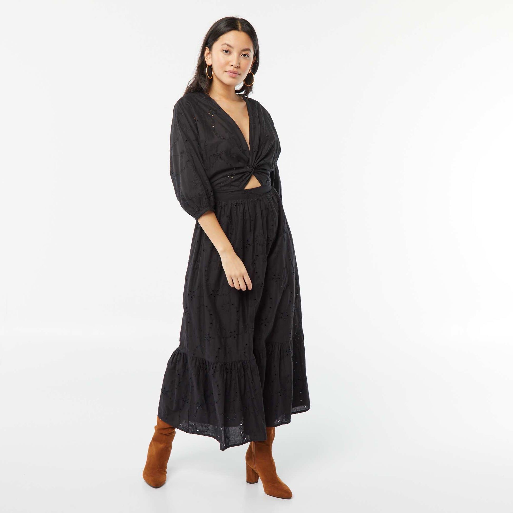Robe longue avec broderie anglaise et volant à la base NOIR