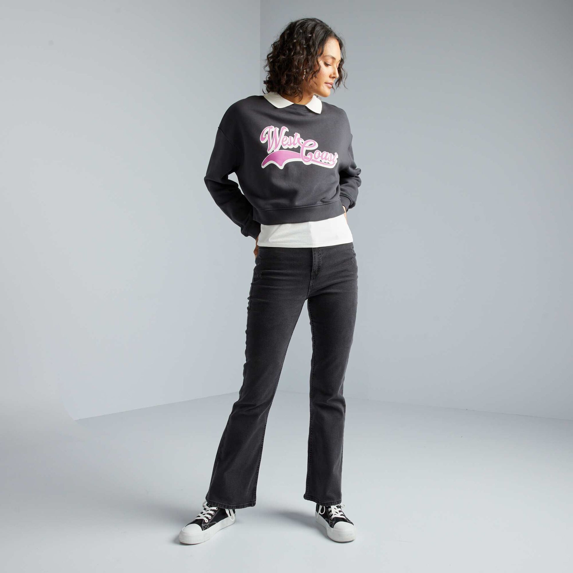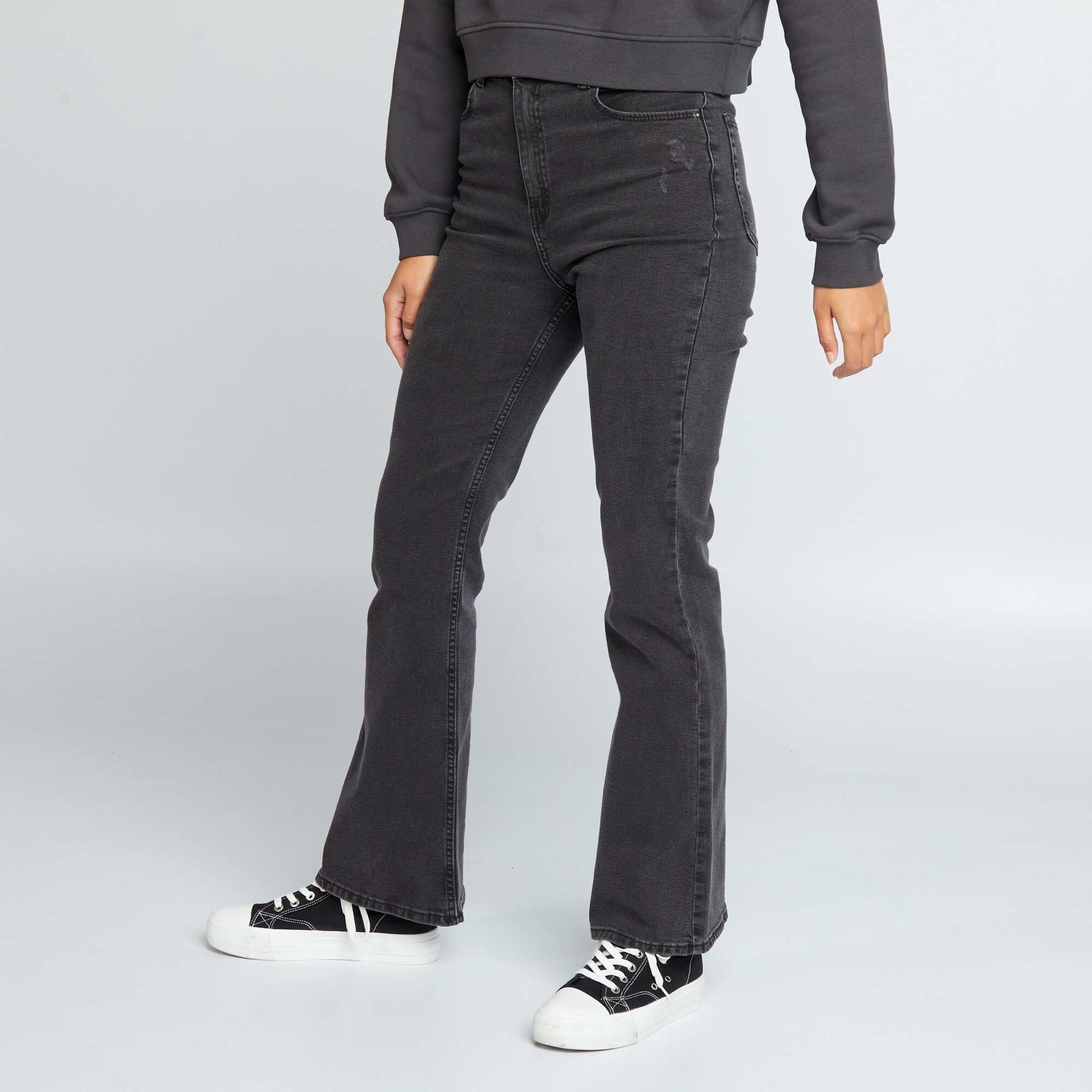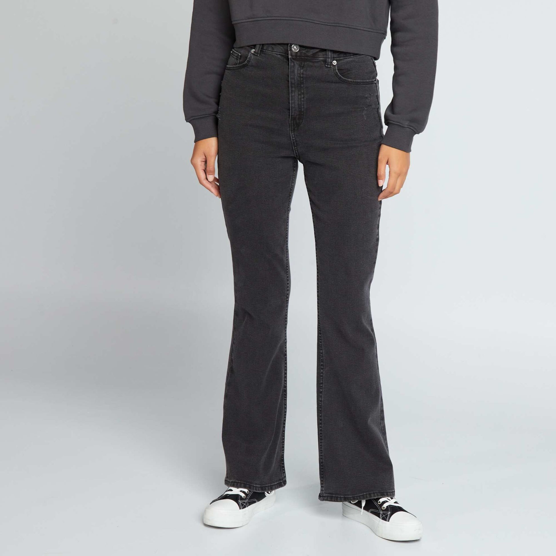 Le jean flare un c t tr s retro qu'on adore et il s'adapte toutes les morphologies , ) - Jean flare / bootcut - Ouverture zipp e + bouton devant - Passants pour ceinture - 2 poches plaqu es + 1 poche ticket devant - 2 poches surpiqu es au dos - D tails d'usure devant - Notre mannequin porte une taille 36 et mesure 1m70