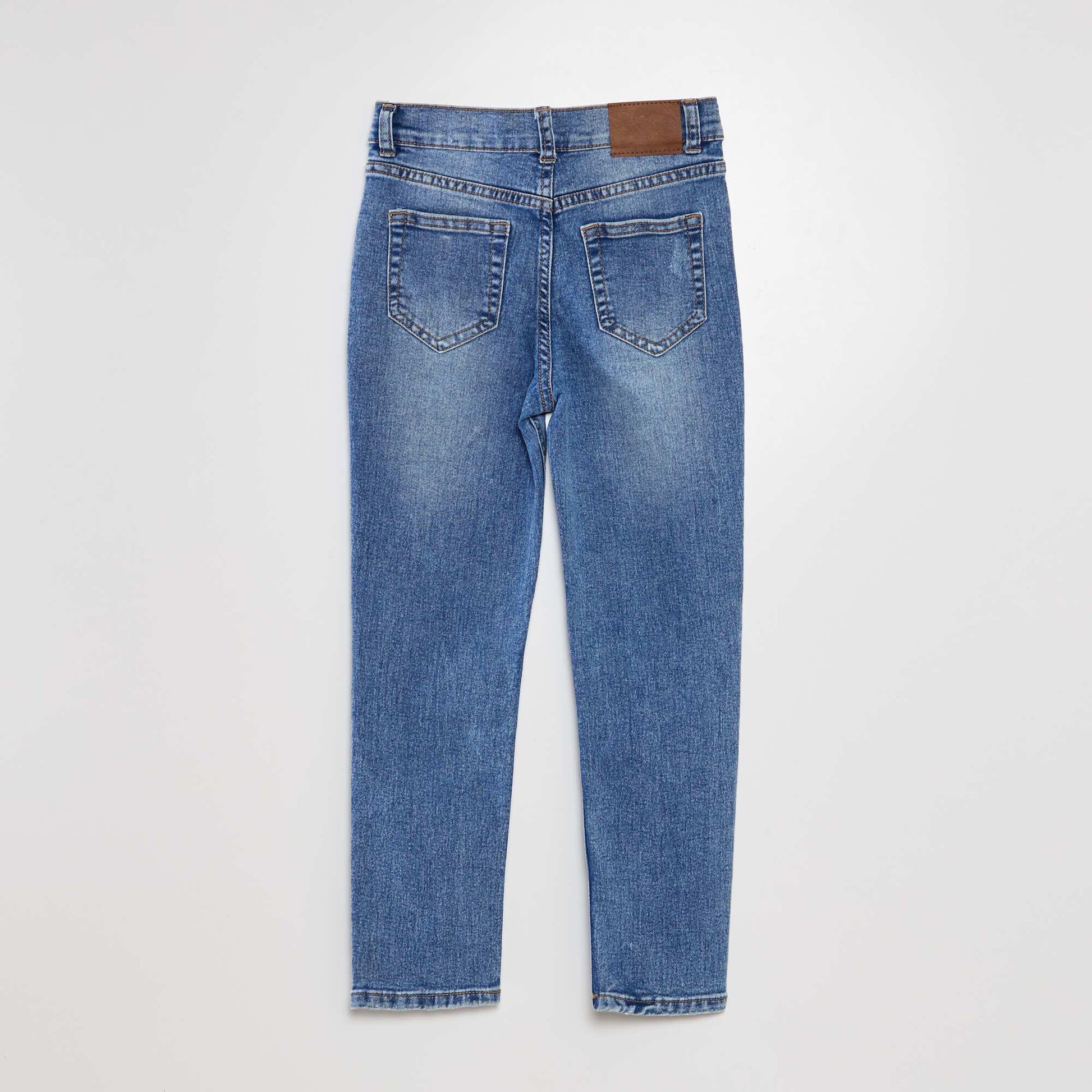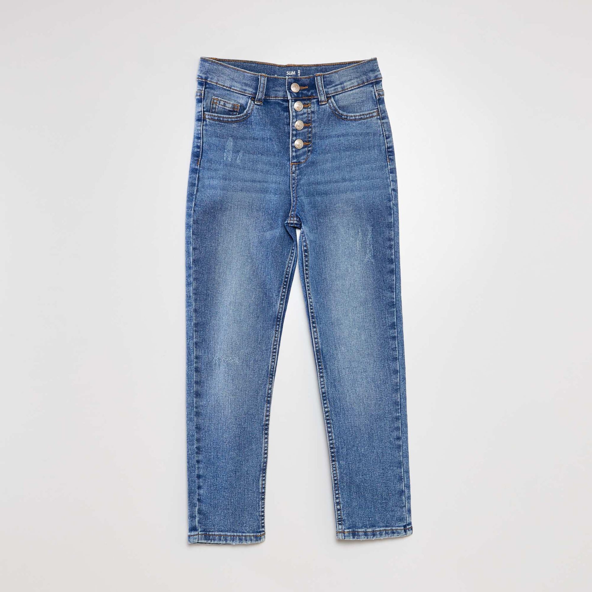 Un jean stretch tr s sympa avec ses multiples boutons ! - Jean slim - Mati re stretch - Taille haute - Ajustable de l'int rieur - Ouverture pressions - 5 poches - Passants pour ceinture