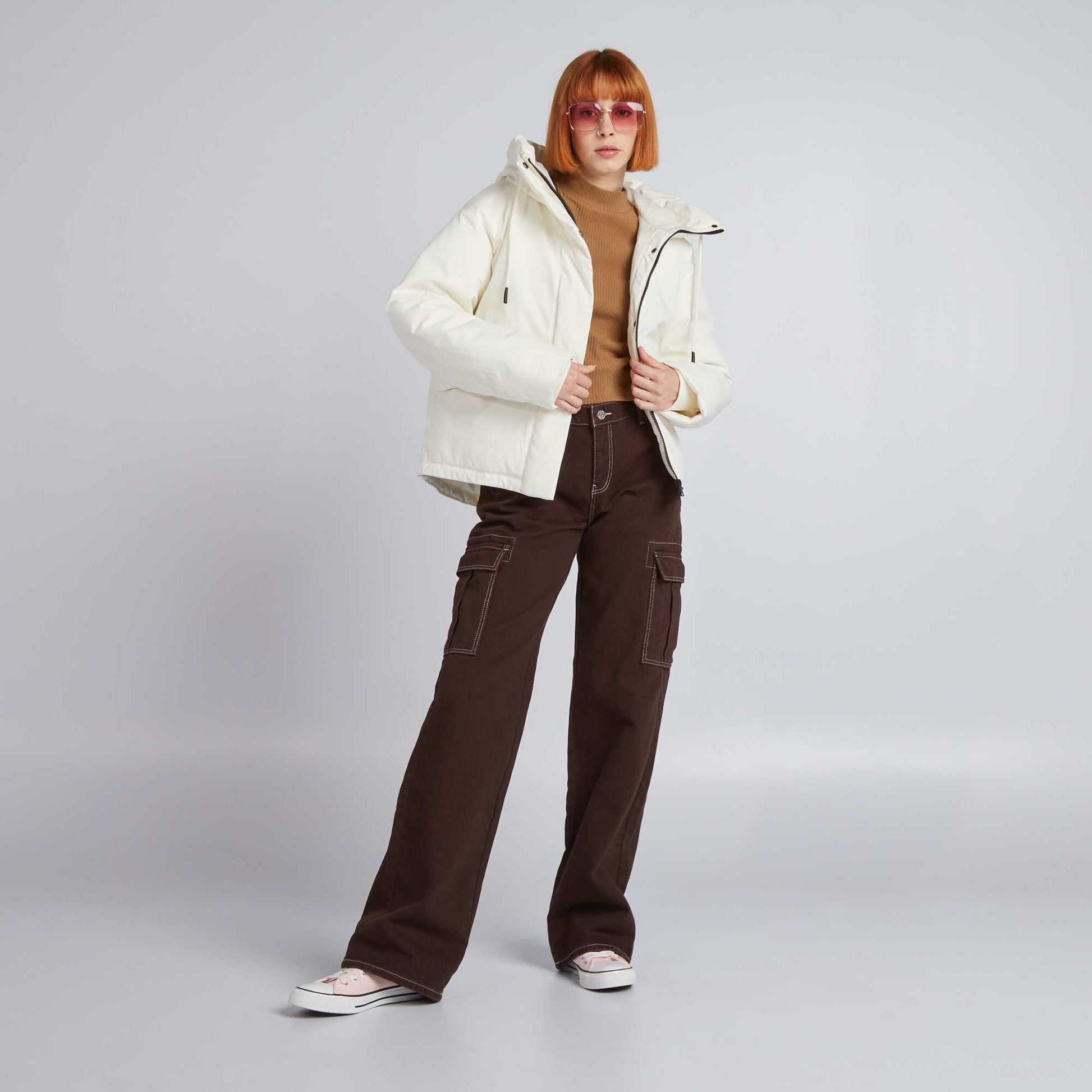 Ce pantalon avec poches rabat est confortable gr ce sa forme wide leg et pratique gr ce ses multipoches ! - Pantalon avec poches rabats - 100% coton - Coupe large - Ouverture zipp e et boutonn e - 2 poches devant - 2 poches rabats - 2 poches au dos - Passants pour ceinture - Longueur entrejambe : 81 cm environ - Largeur bas de jambe : 24 cm environ - Notre mannequin porte une taille 36 et mesure 1m75