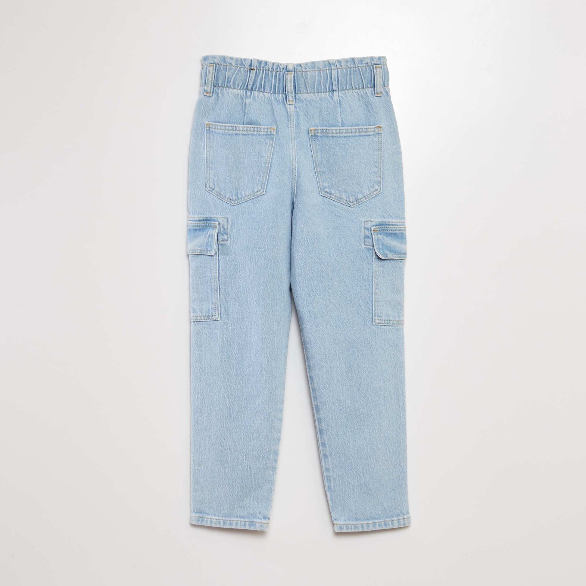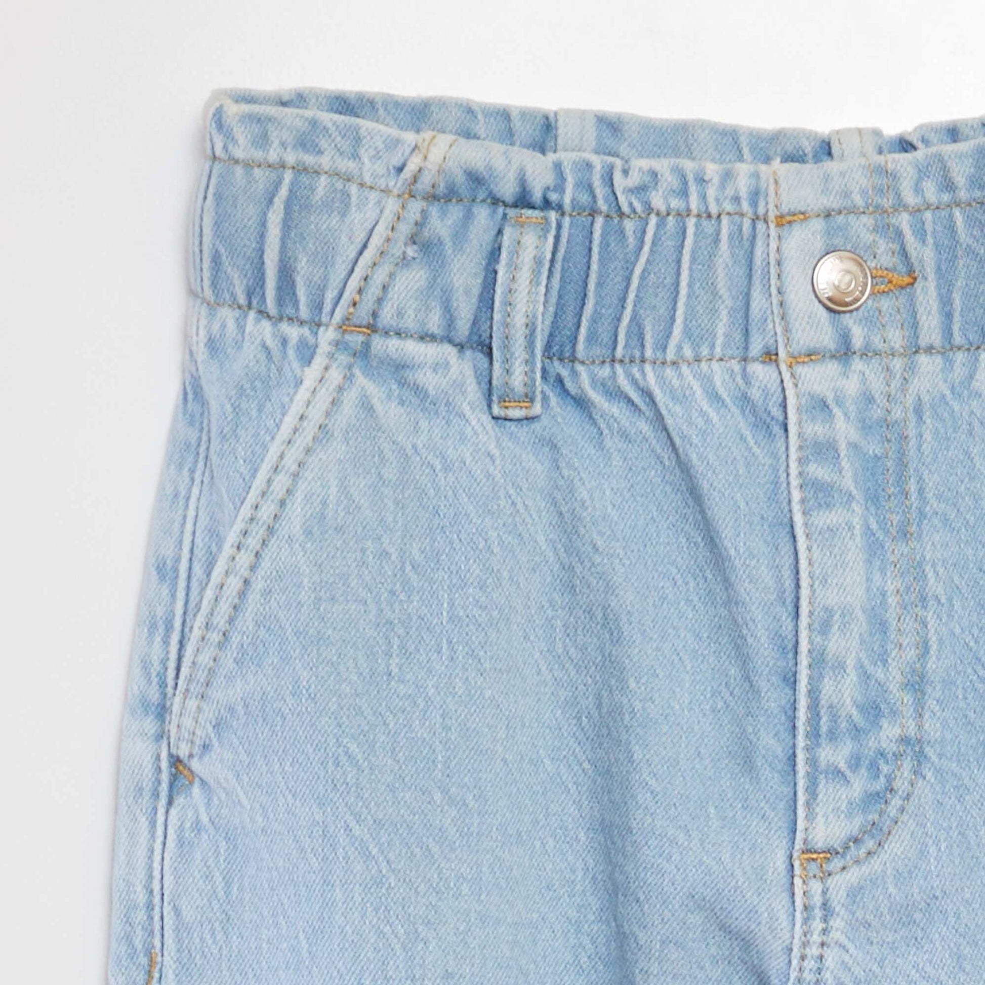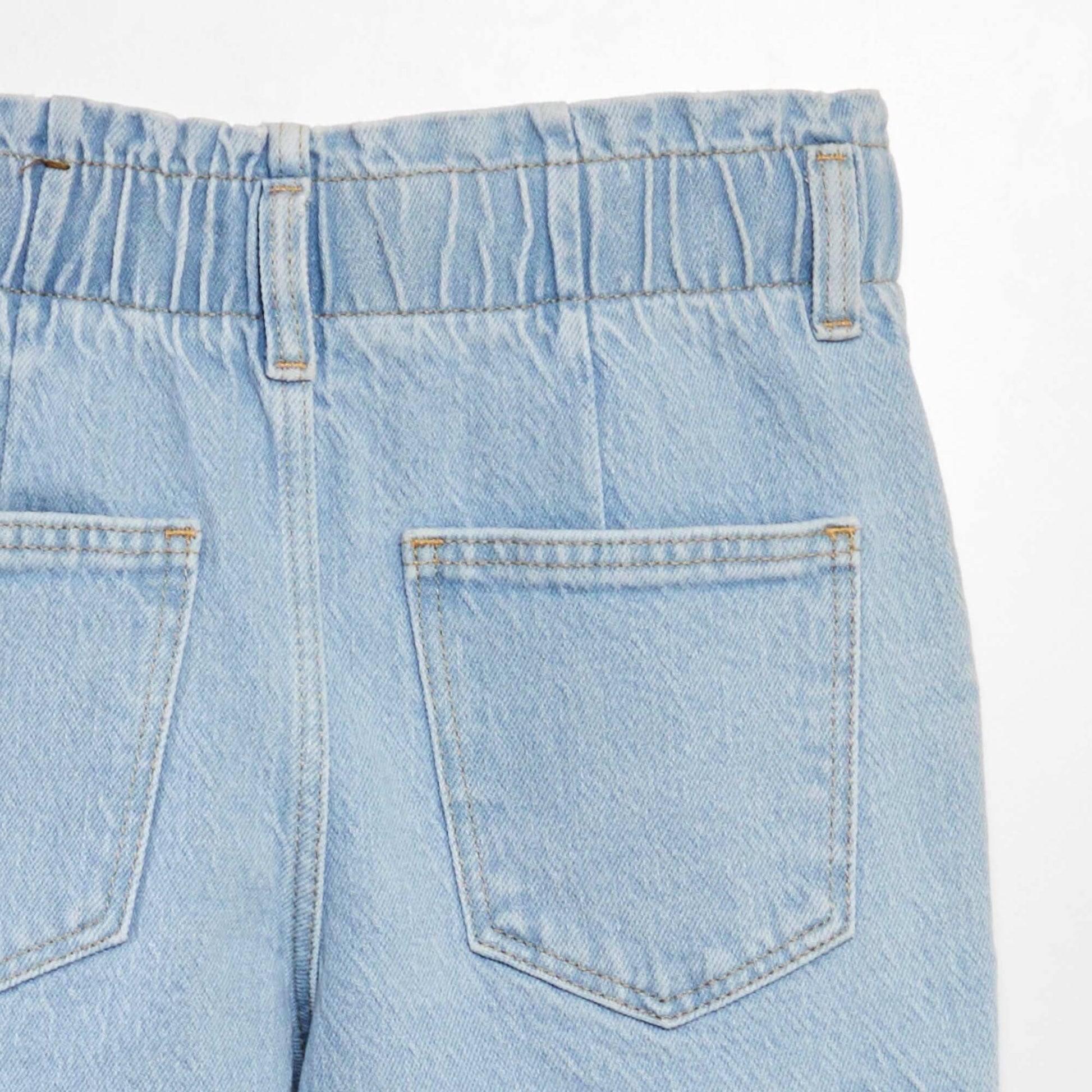 Créez des looks tendances avec ce pantalon coupe mom ! - Pantalon denim - Coupe mom - Ouverture pressionnée et zippée - Taille élastiquée - Taille ajustable par élastiques boutonnés à l'intérieur - Passants pour ceinture - 2 poches devant - 2 poches à rabat sur les côtés - 2 poches arrière