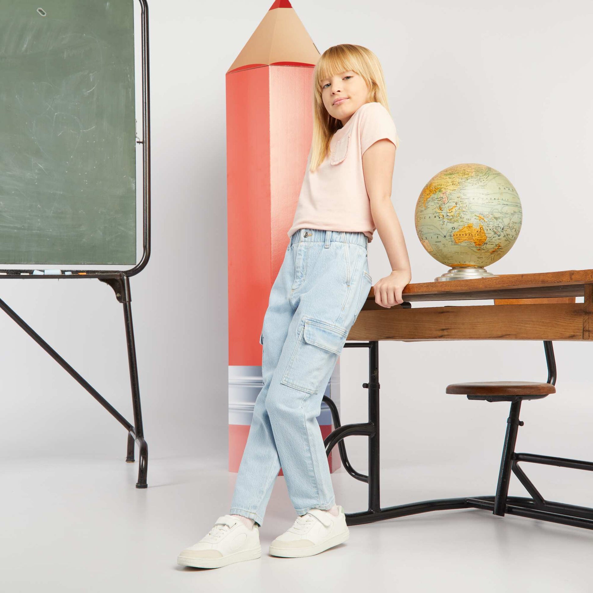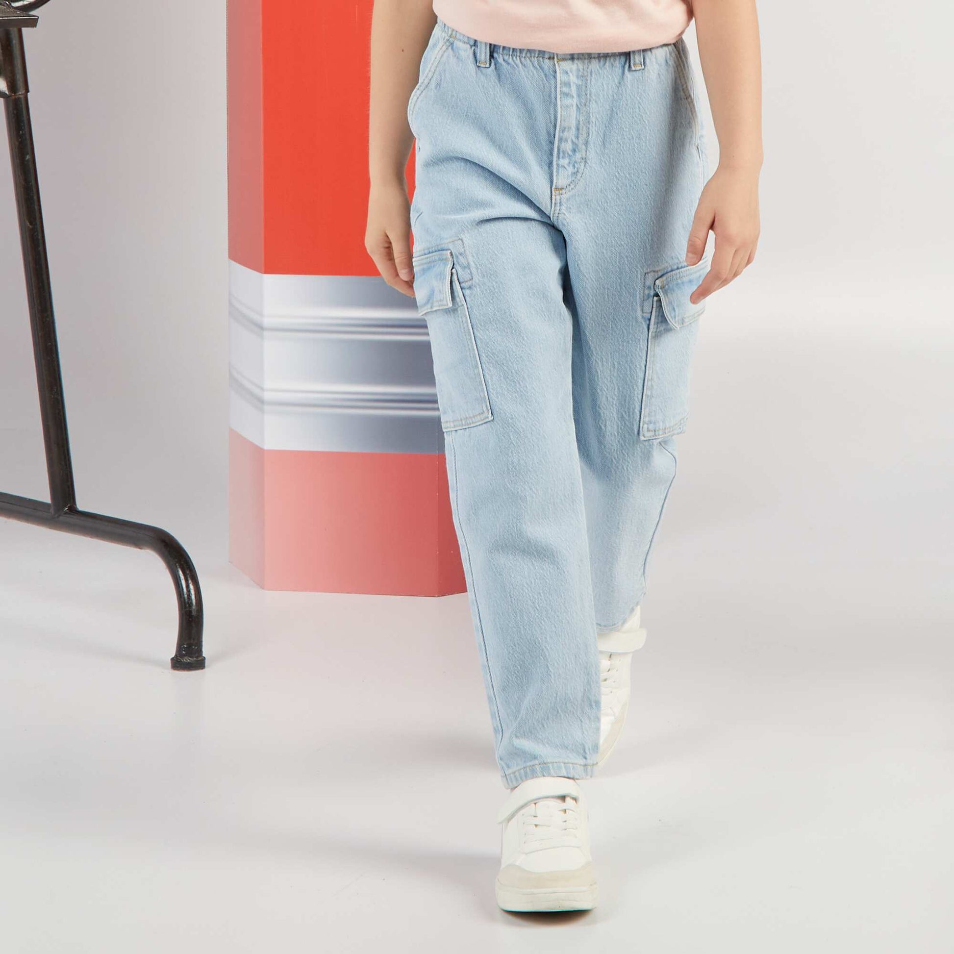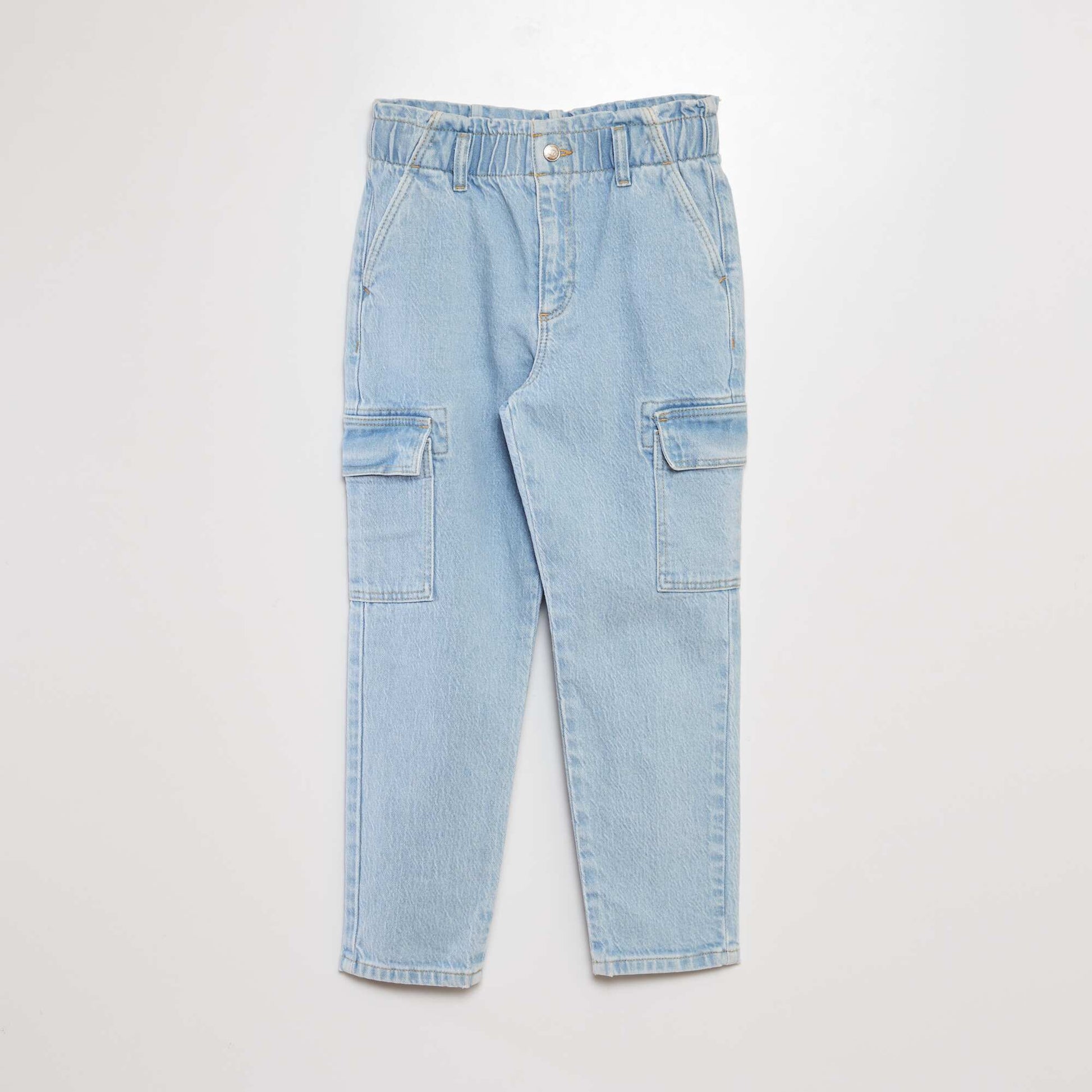 Créez des looks tendances avec ce pantalon coupe mom ! - Pantalon denim - Coupe mom - Ouverture pressionnée et zippée - Taille élastiquée - Taille ajustable par élastiques boutonnés à l'intérieur - Passants pour ceinture - 2 poches devant - 2 poches à rabat sur les côtés - 2 poches arrière