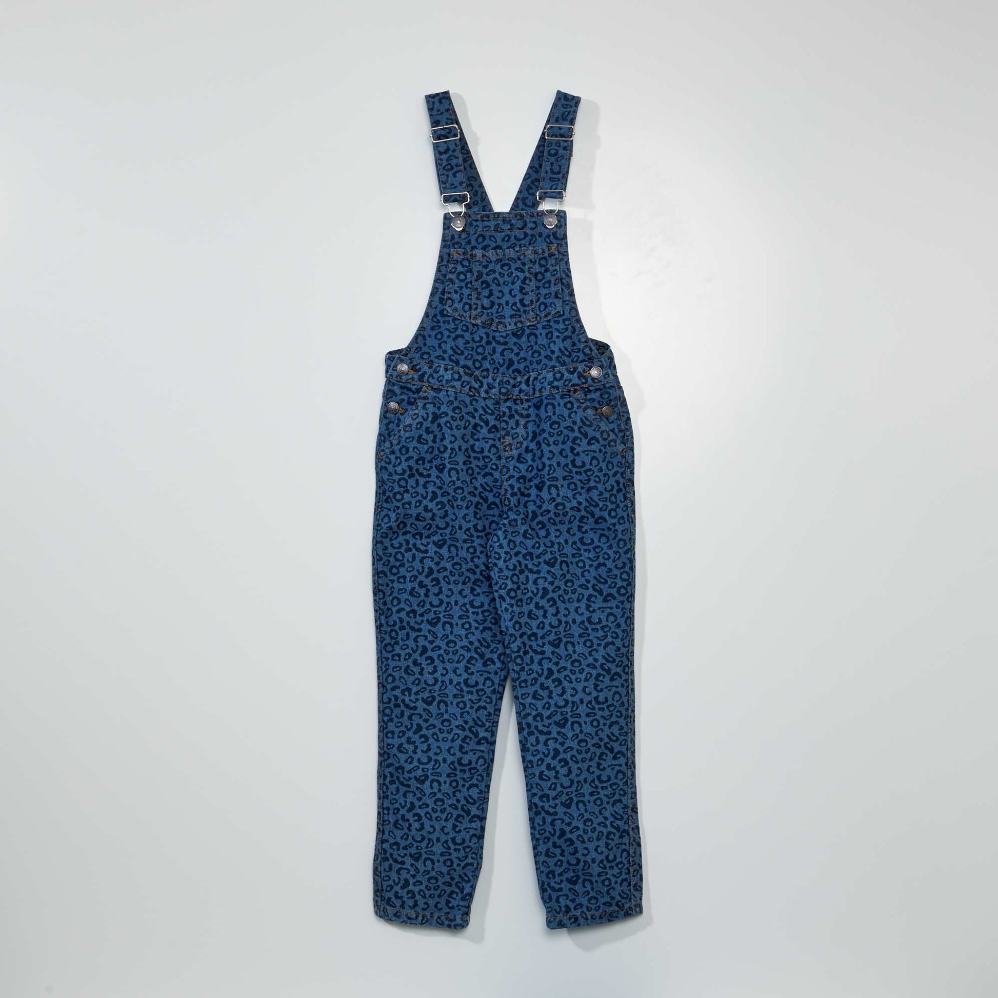 On adore le motif 'jaguar' de cette salopette ! - Salopette en jean - Bretelles avec ouverture par pressions m tal - 1 poche plaqu e devant - Ouverture par pressions sur les c t s - 2 poches - 2 poches plaqu es au dos - Motif all over