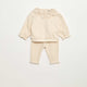 Un ensemble pratique et confort pour bébé ! - Sweat avec col brodé - En molleton gratté (doux et chaud) - Ouverture à pressions au dos - Col rond - Manches longues - Volanté - Jogging en molleton gratté (doux et chaud) - Taille élastiquée - Revers en bas de jambe