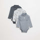 Un lot de bodies simple et durable ! - Lot de 3 bodies sous-pull - Avec col roulé - Fermeture pression au dos - 1 bodie uni - 1 bodie rayé - 1 bodié à motif all-over - Fermeture pression à l'entrejambe