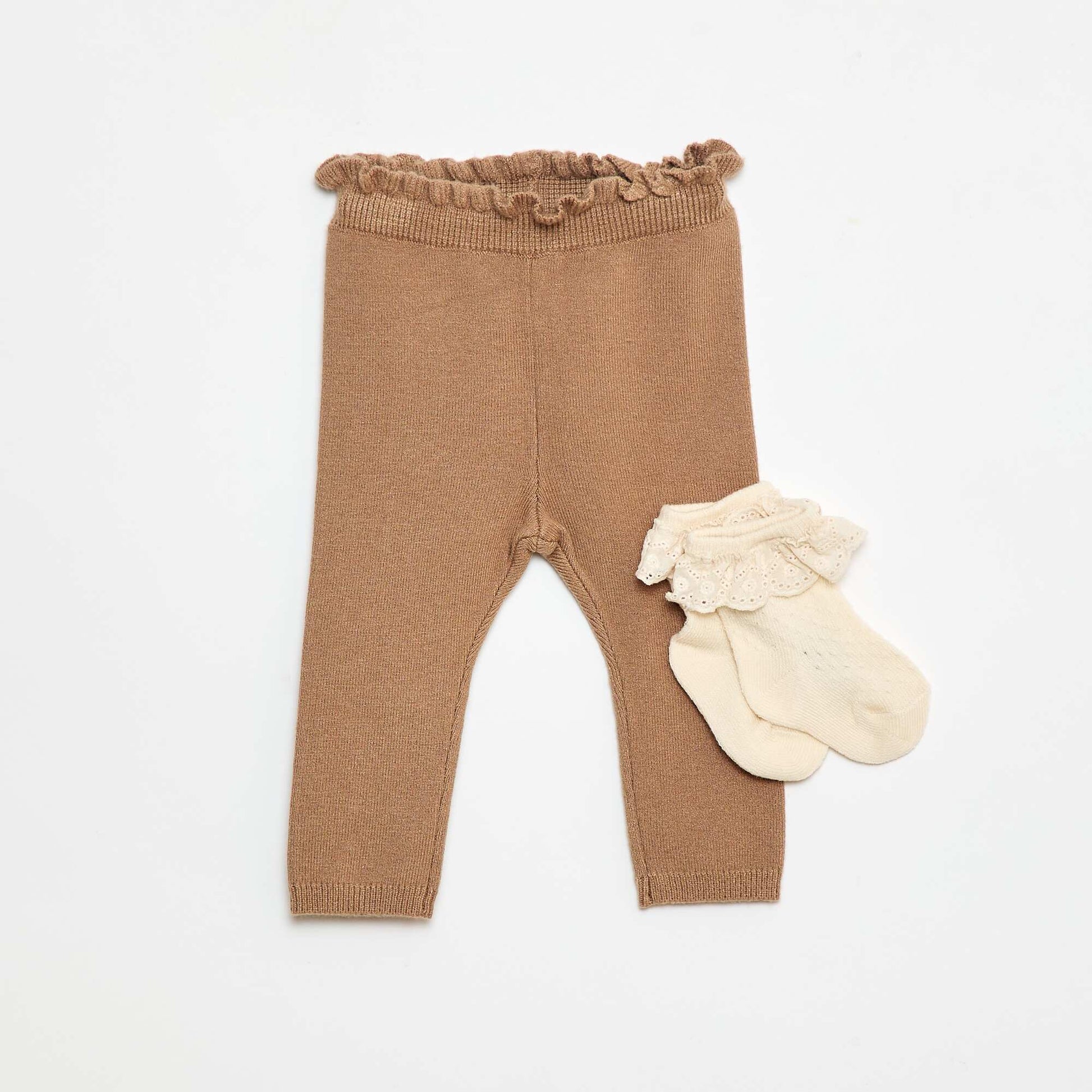 Ensemble Legging fantaisie + chaussette en dentelle MARRON