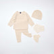 Profiter d'un tout en un pratique et polyvalent pour bébé ! - Bavoir à motif - Forme triangulaire - Chaussette à motif - Bonnet en maille - Patch placé devant - Brassière avec fil de serrage - Finition bord côte