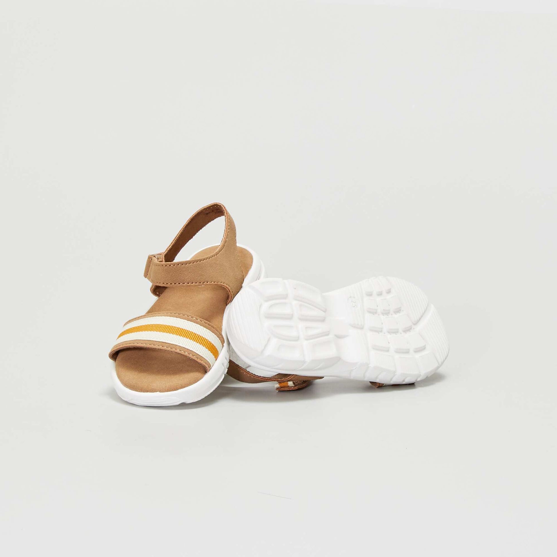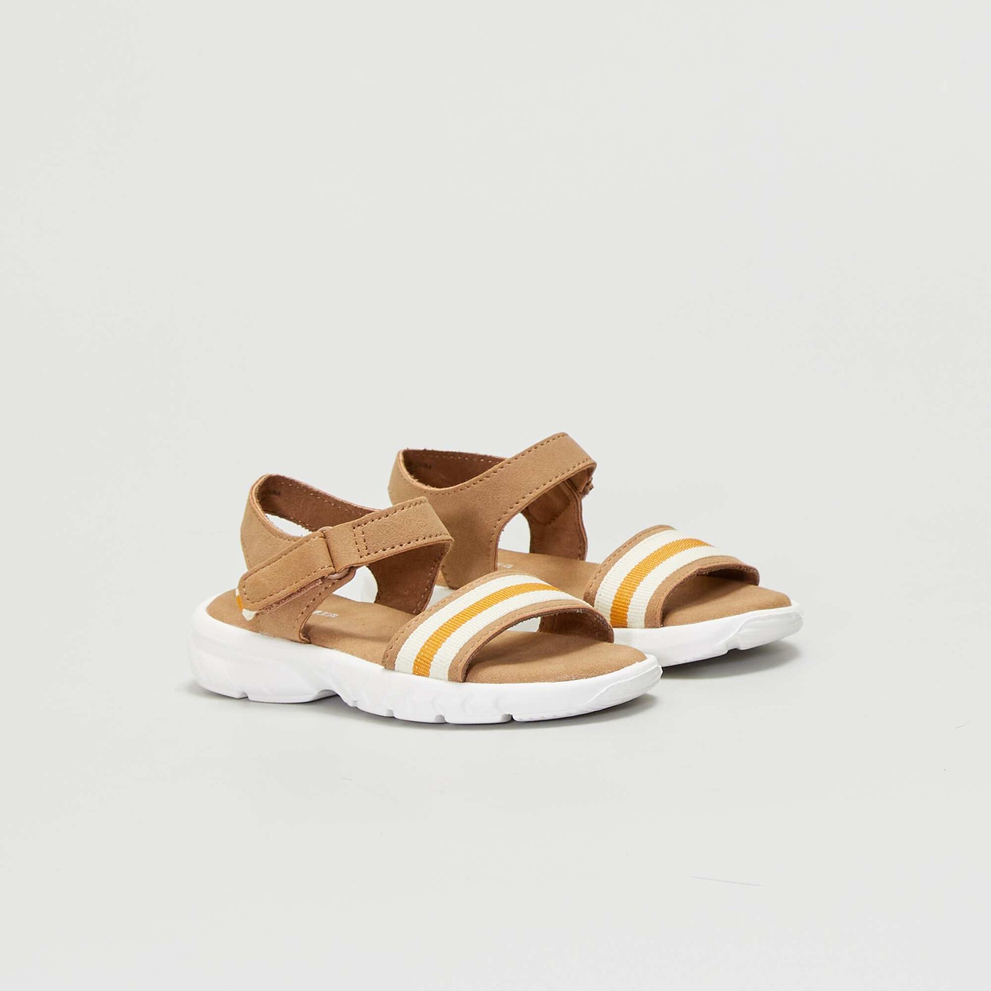 Les sandales estivales ! - Sandales en toile et su dine - Ouverture par scratch tour de cheville et dessus de pied - Bride l'avant avec empi cement en toile - Semelle confortable en su dine - Semelle sport