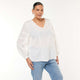 Un blouse ample qui se démarque via ses plumetis et ses broderies ajourées ! - Blouse fluide uni - Col V - Plumetis et ses broderies ajourées - Manches longues - Poignets boutonnés - Ouverture boutonnée - Longueur du dos : 69 cm environ - Notre mannequin porte une taille XL et mesure 1m75