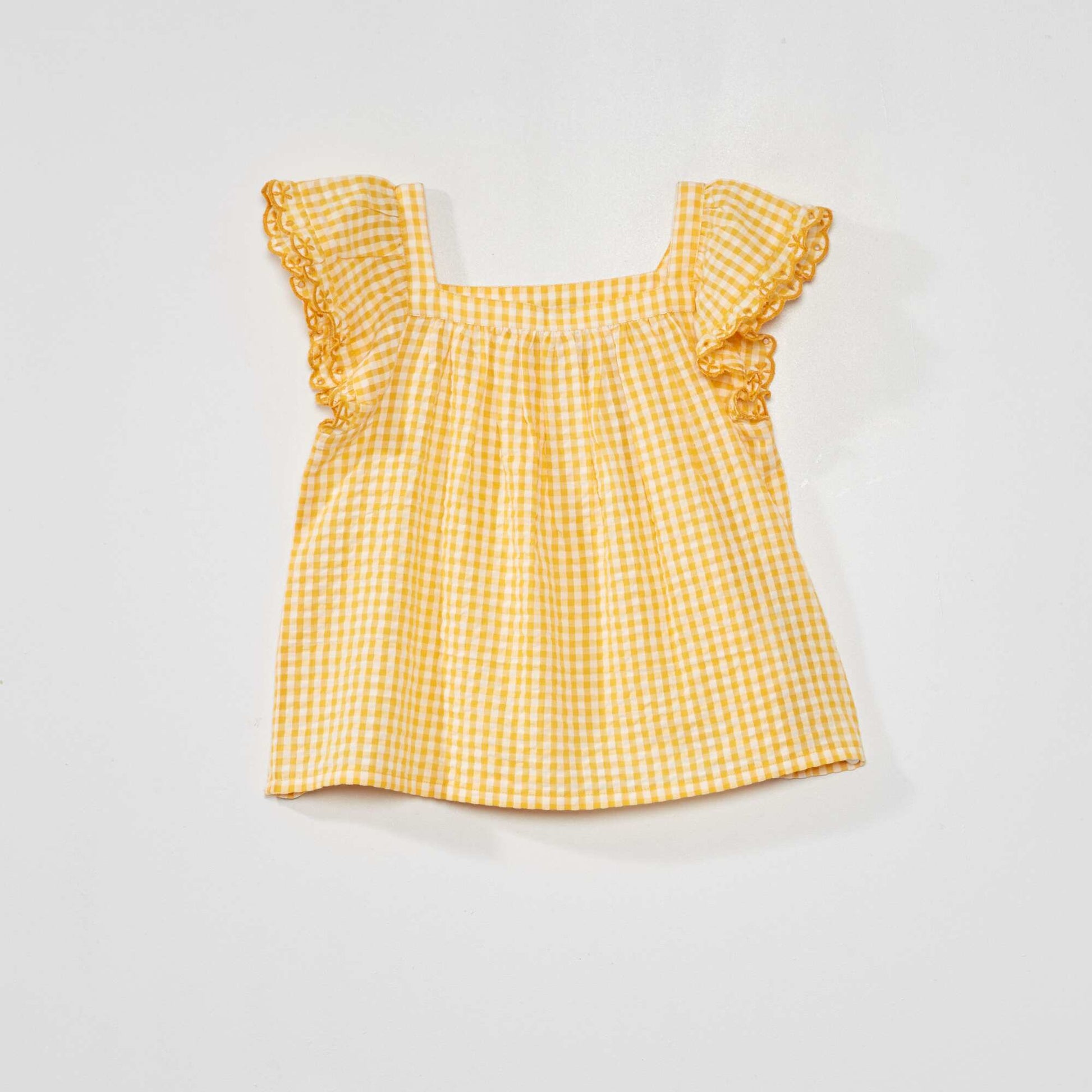 Optez pour cette jolie blouse 'vichy' qui apporte l g ret et romantisme la tenue. - Blouse avec imprim 'vichy' - 100% coton - Coupe vas e - Encolure carr - Manches courtes + volants - Imprim 'vichy' all-over