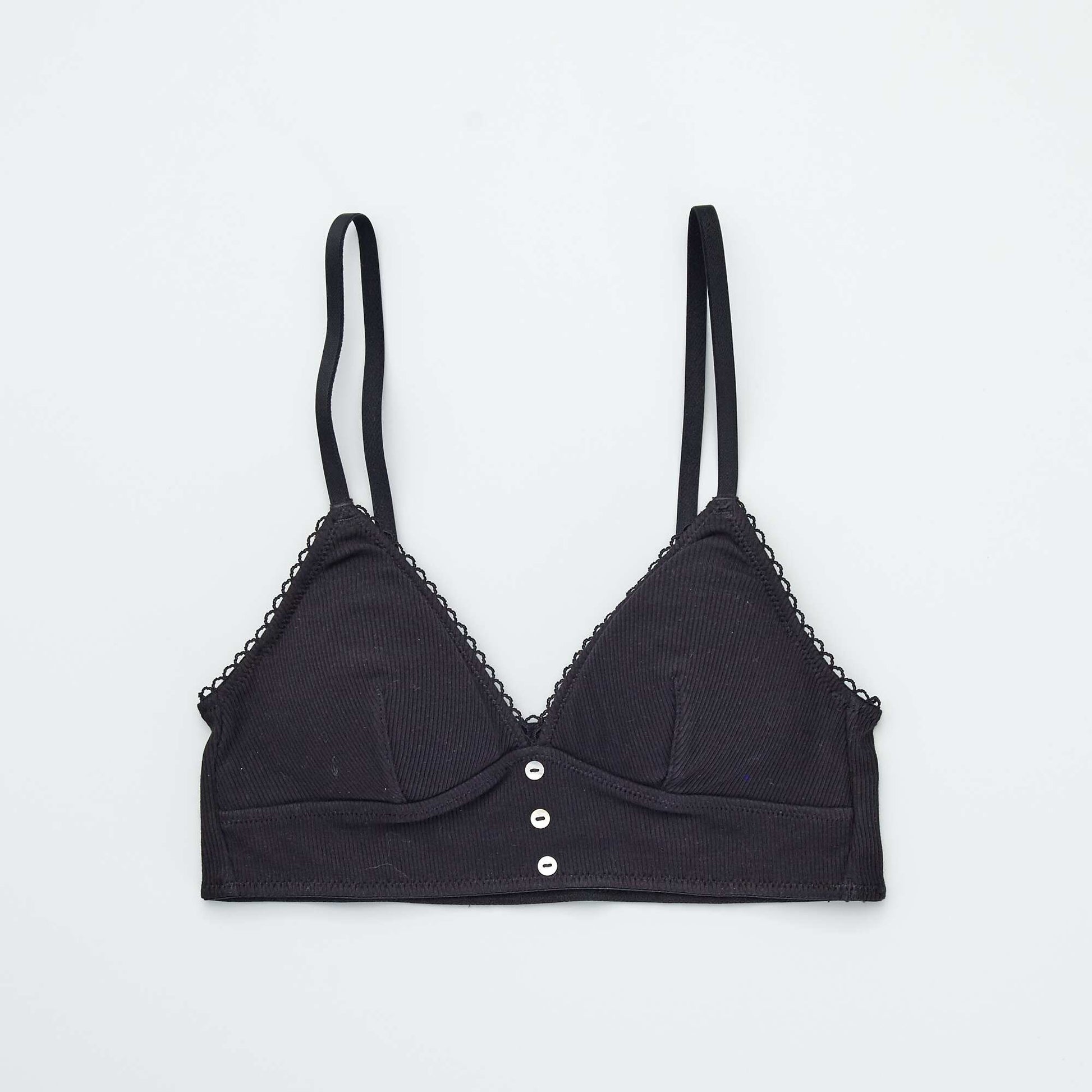 Le joli haut adopter pour un max' de confort au quotidien. - Brassi re en maille c tel e - Finitions sans coutures pour le confort - Bretelles fines - Encolure V - Bandeau lastiqu e sous poitrine - Picots fantaisie en finition le long des bords