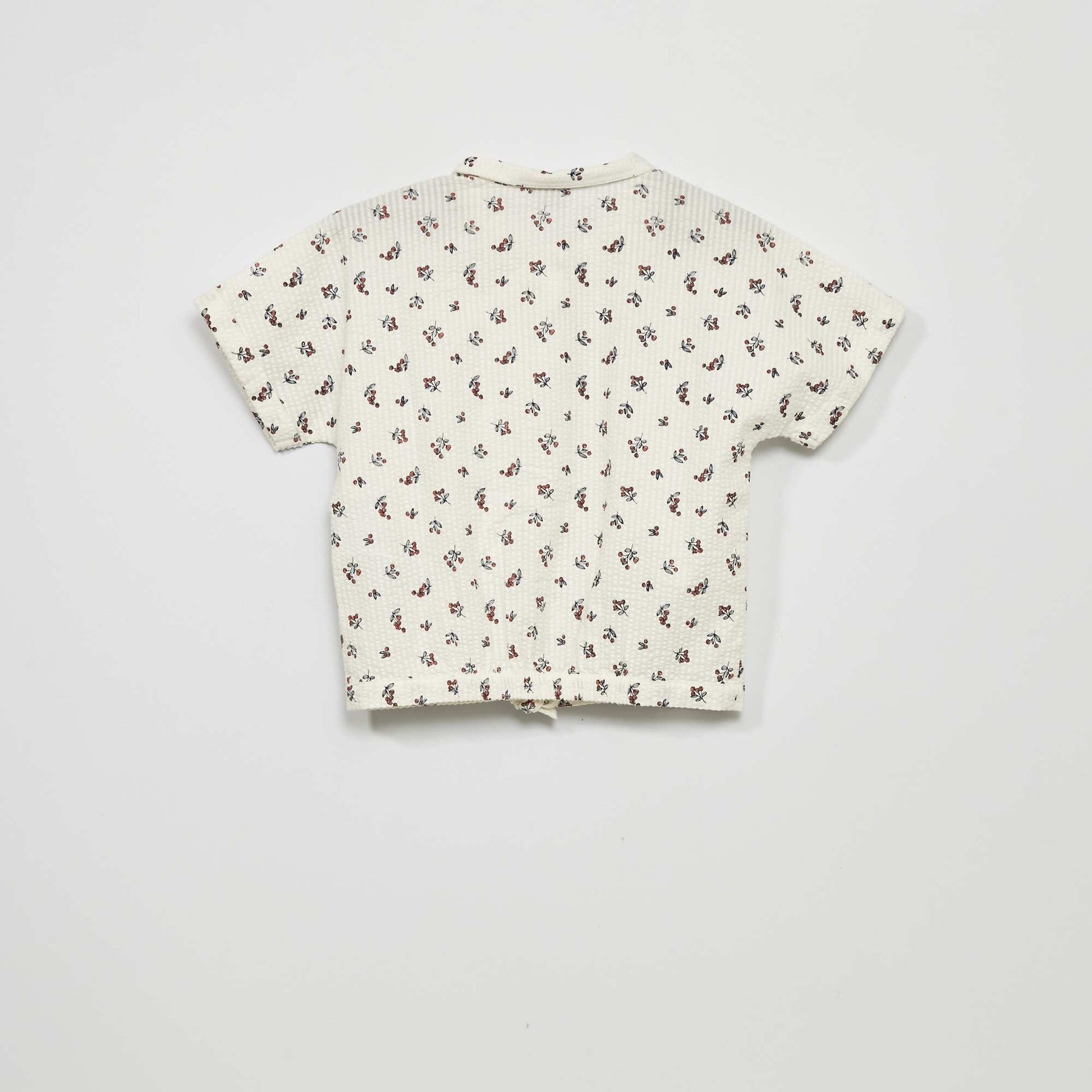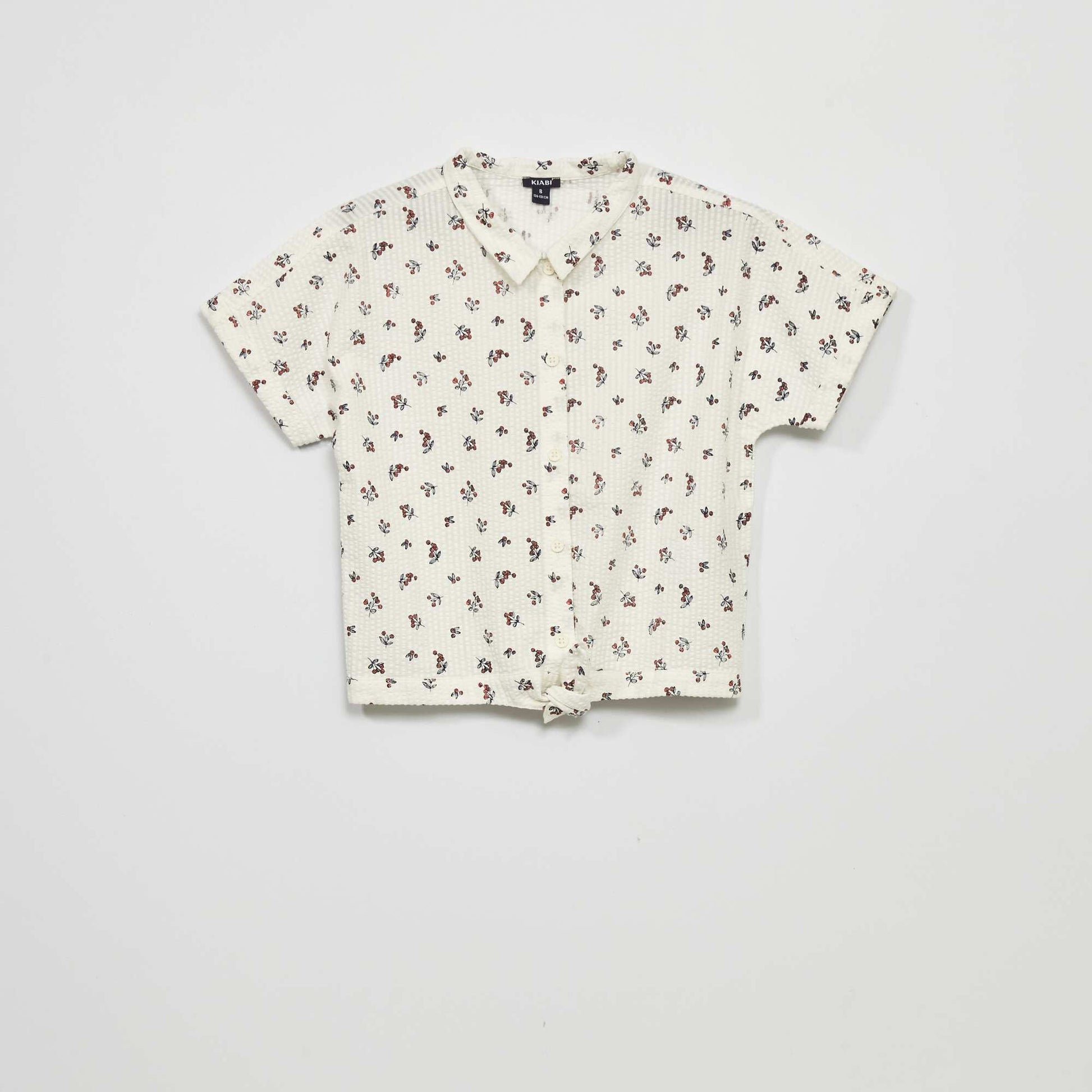 Un chemisier en mati re gaufr e tr s coquet ! - Chemisier en maille gaufr e - Mati re gaufr e - Col chemise - Manches courtes avec revers