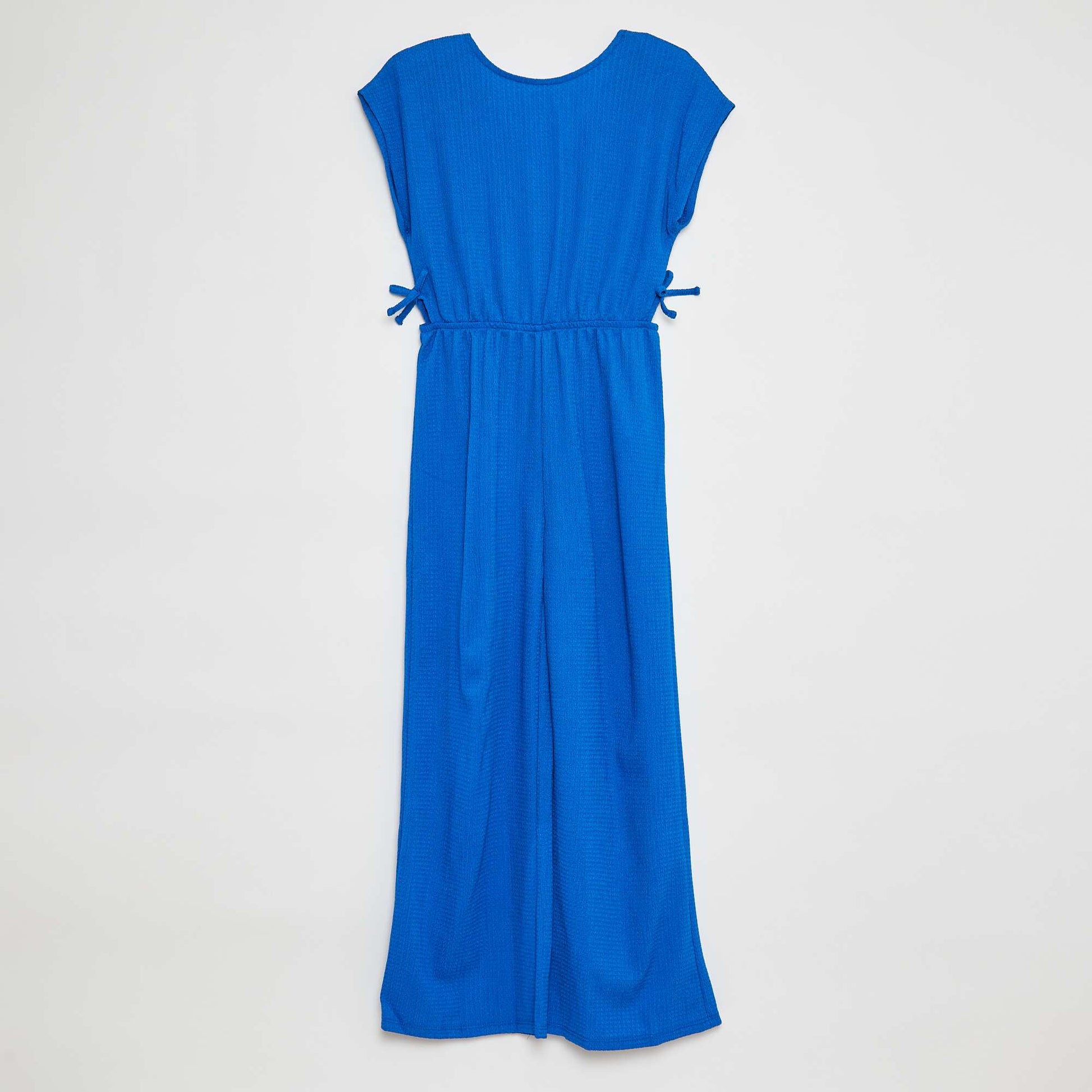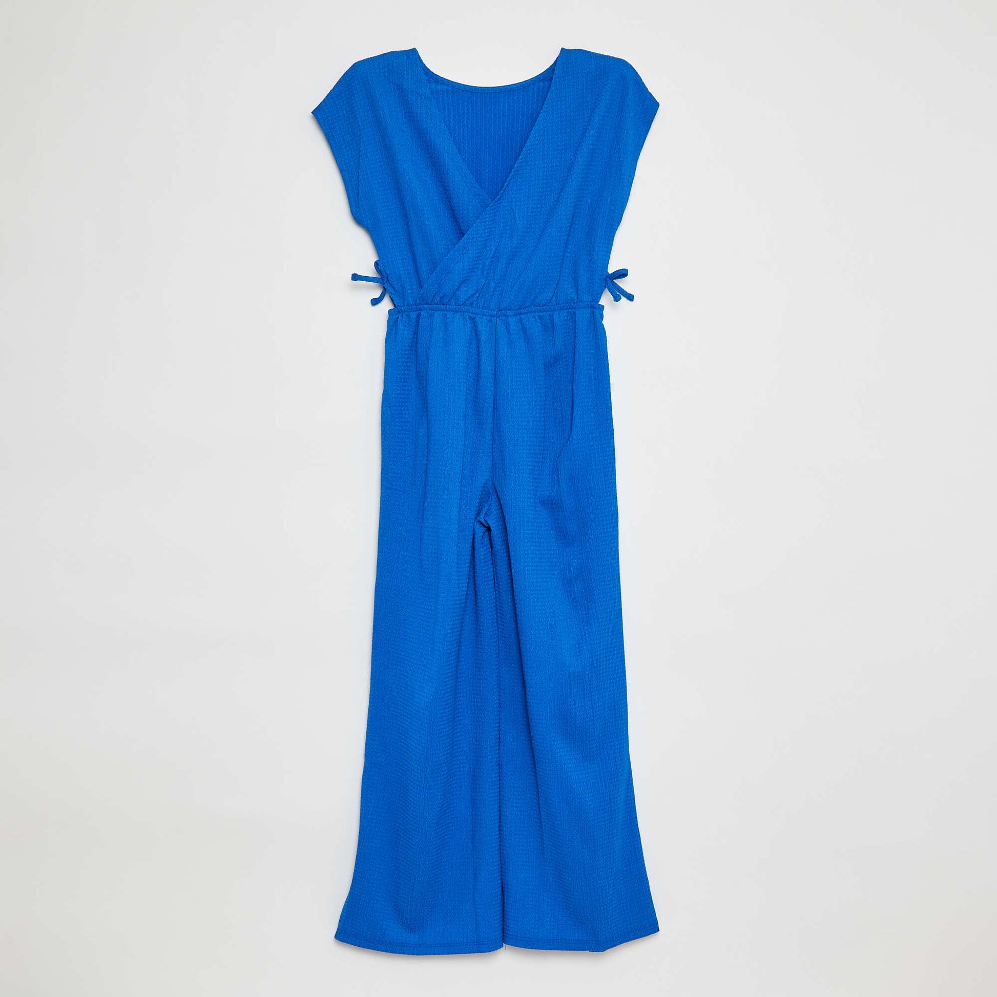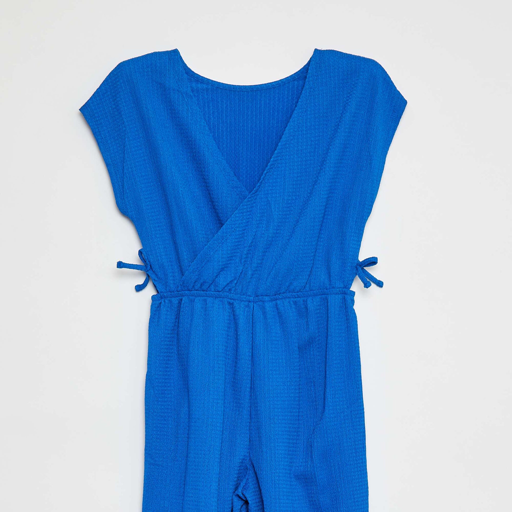 Pour un look mignon et champêtre, offrez-lui une combinaison légère et fleurie. - Combinaison longue - Manches courtes - Col croisé - Taille élastiquée - Nœuds décoratifs sur les côtés - Imprimé fleuri all over