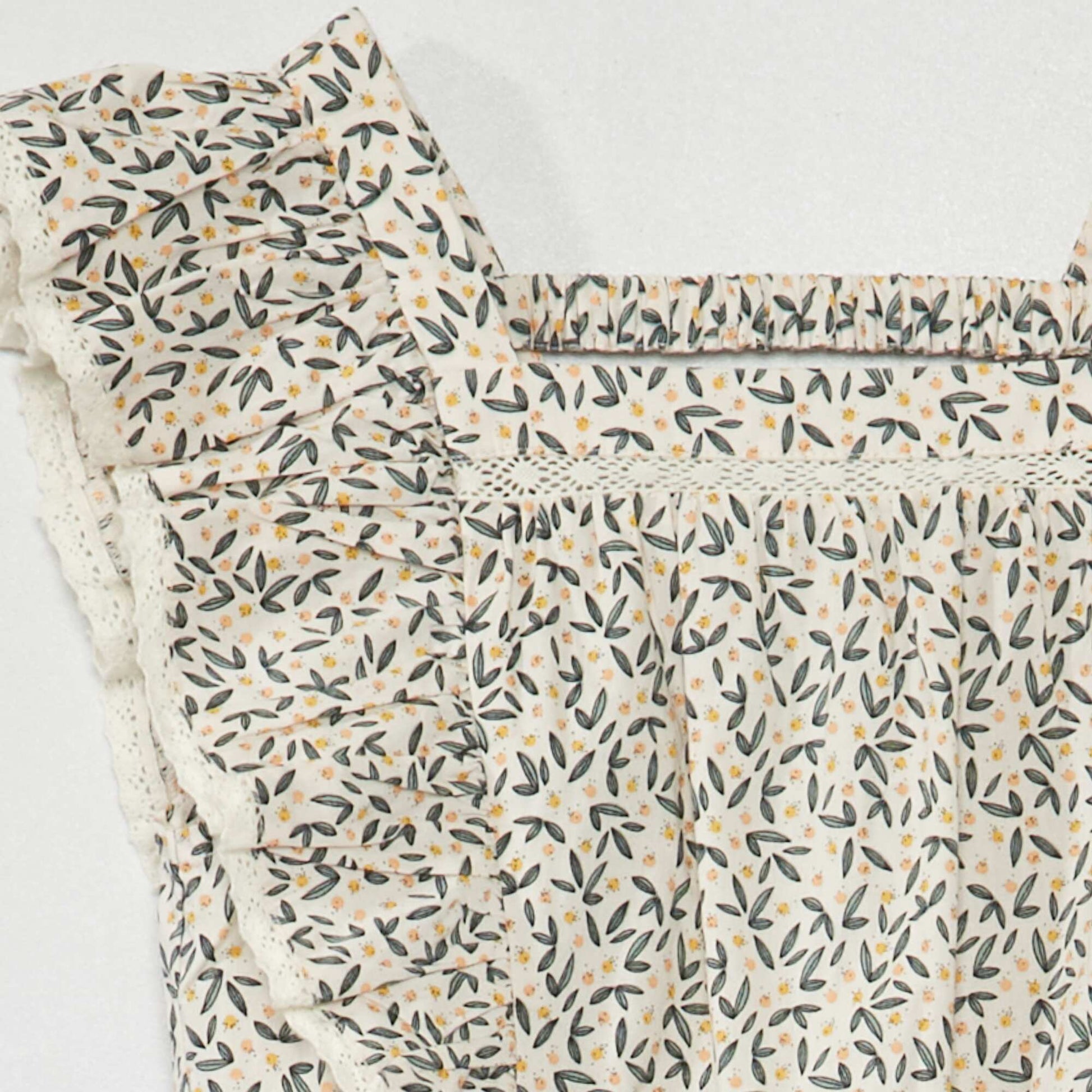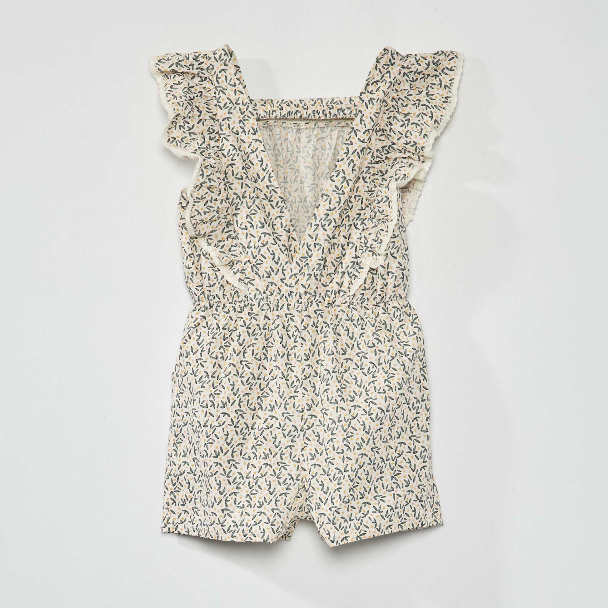 Un combishort tr s coquet pour votre petite puce ! - Combishort - Col rond - Sans manches - Volants devant et derri re - Taille lastiqu e - Dos ouvert avec large lastique - Imprim all over