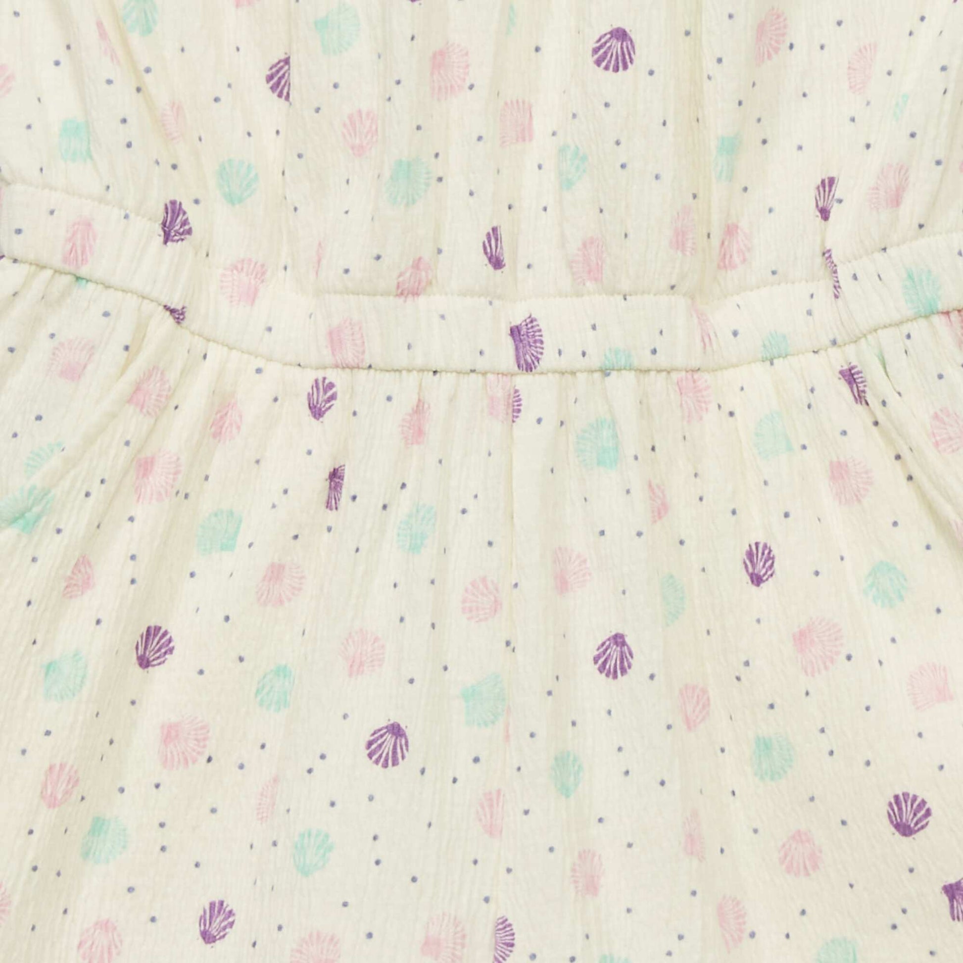 Un combishort original et fun avec des imprim s estivaux, on adore ! - Combishort en maille ondul e - Contient du coton en conversion - Mati re stretch - Fines bretelles - Taille lastiqu e - 2 poches sur les c t s - Base de jambe volant e - Imprim coquillages all over