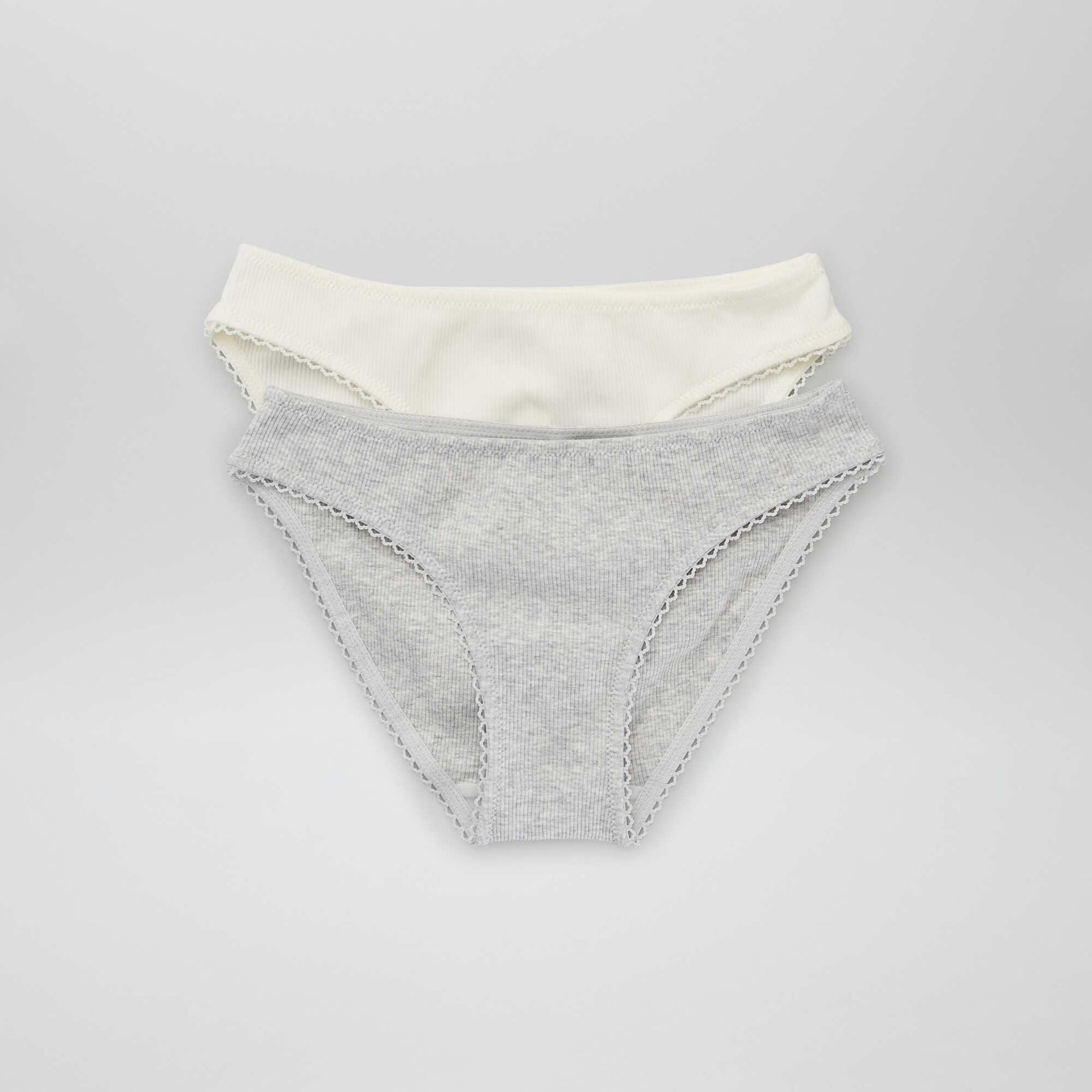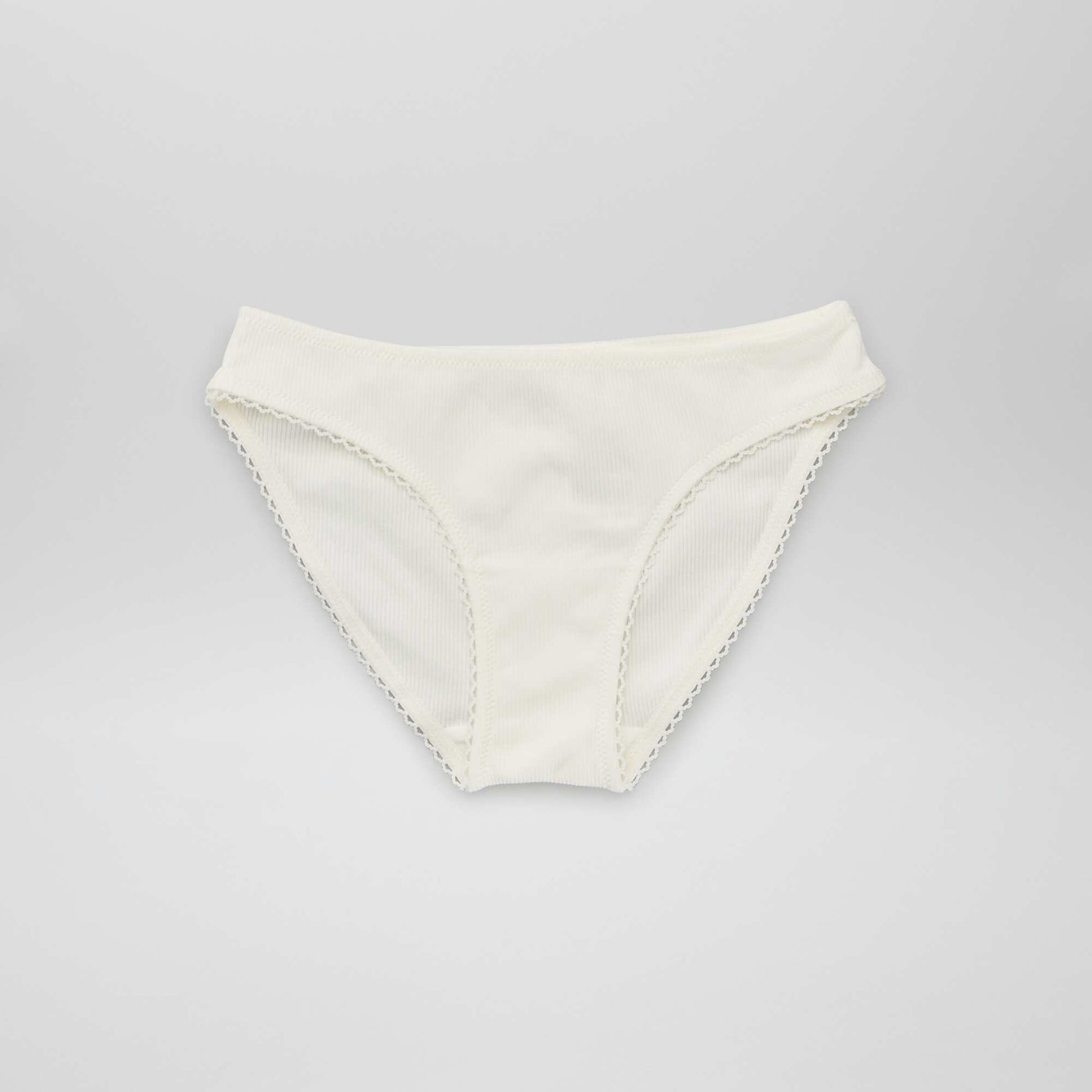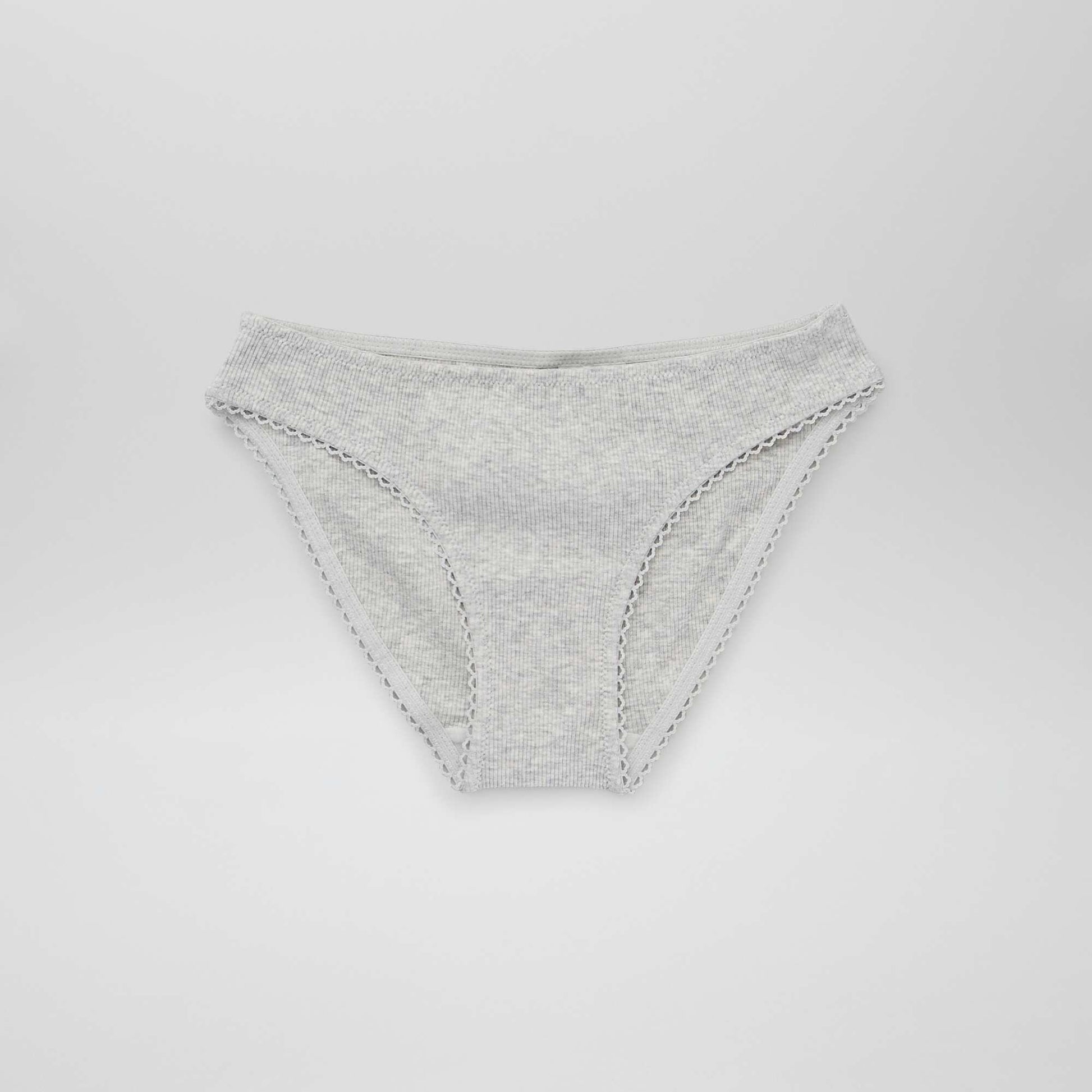 Confort absolu. - Culotte - Coton majoritaire - Matière stretch - Maille microfibre animée de fines côtes - Bords picots fantaisie en finition - Fond doublé jersey