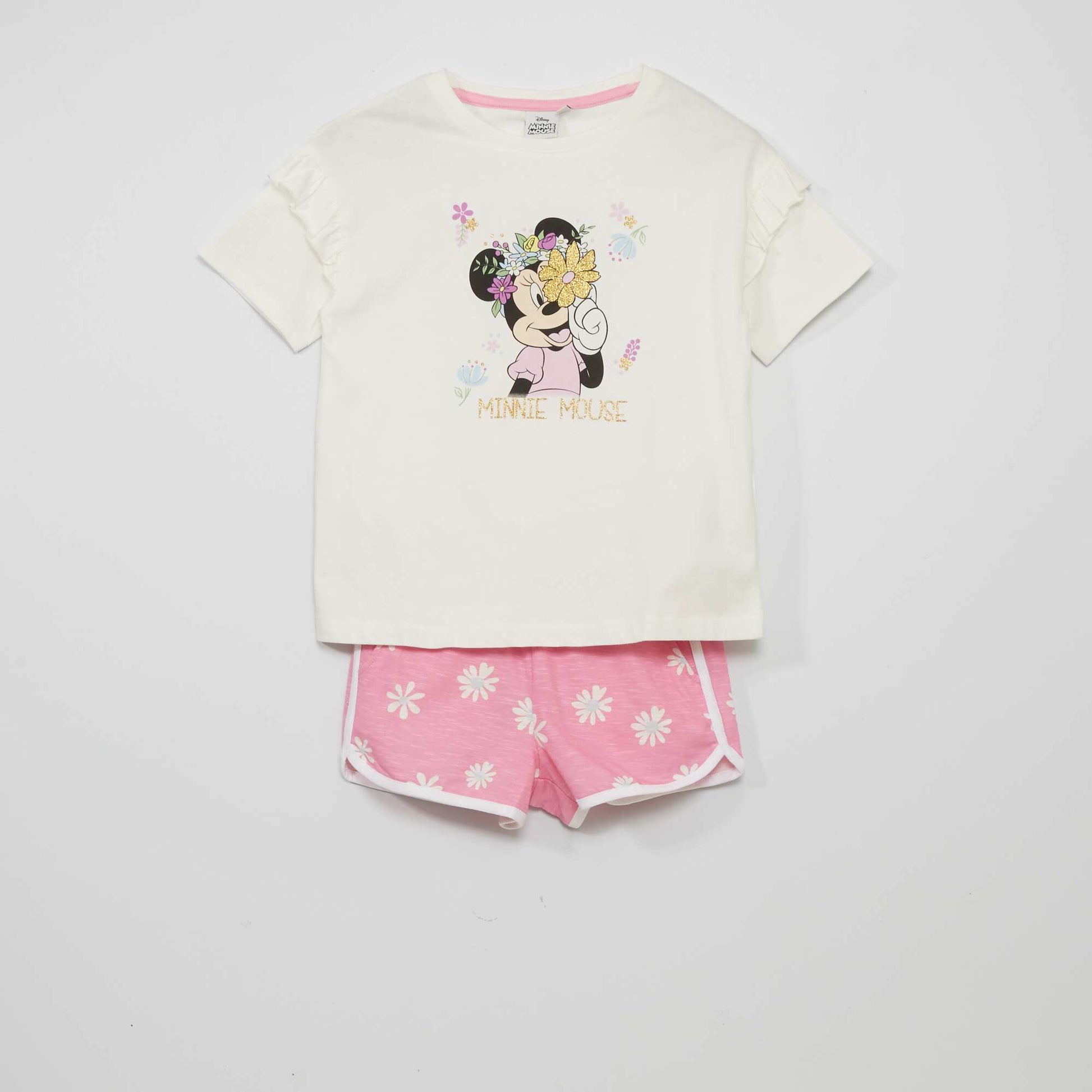 L'ensemble 'Minnie' des beaux jours ! - T-shirt 'Minnie' 'Disney' - Col rond - Manches courtes - Imprim fantaisie plac devant - Volants aux paules - Short assorti avec imprim s - Taille lastiqu e - 2 poches - Biais contrastant