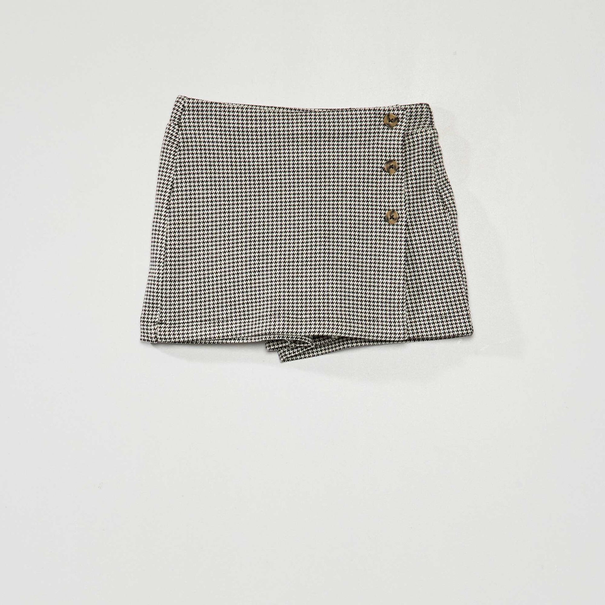 Une jupe fantaisie avec ses boutons, et sa maille douce carreaux ! - Jupe en maille - L g rement stretch - Taille lastiqu e - Coupe fa on portefeuille - Forme vas e - Boutons fantaisie (ouverture factice) - Motifs carreaux