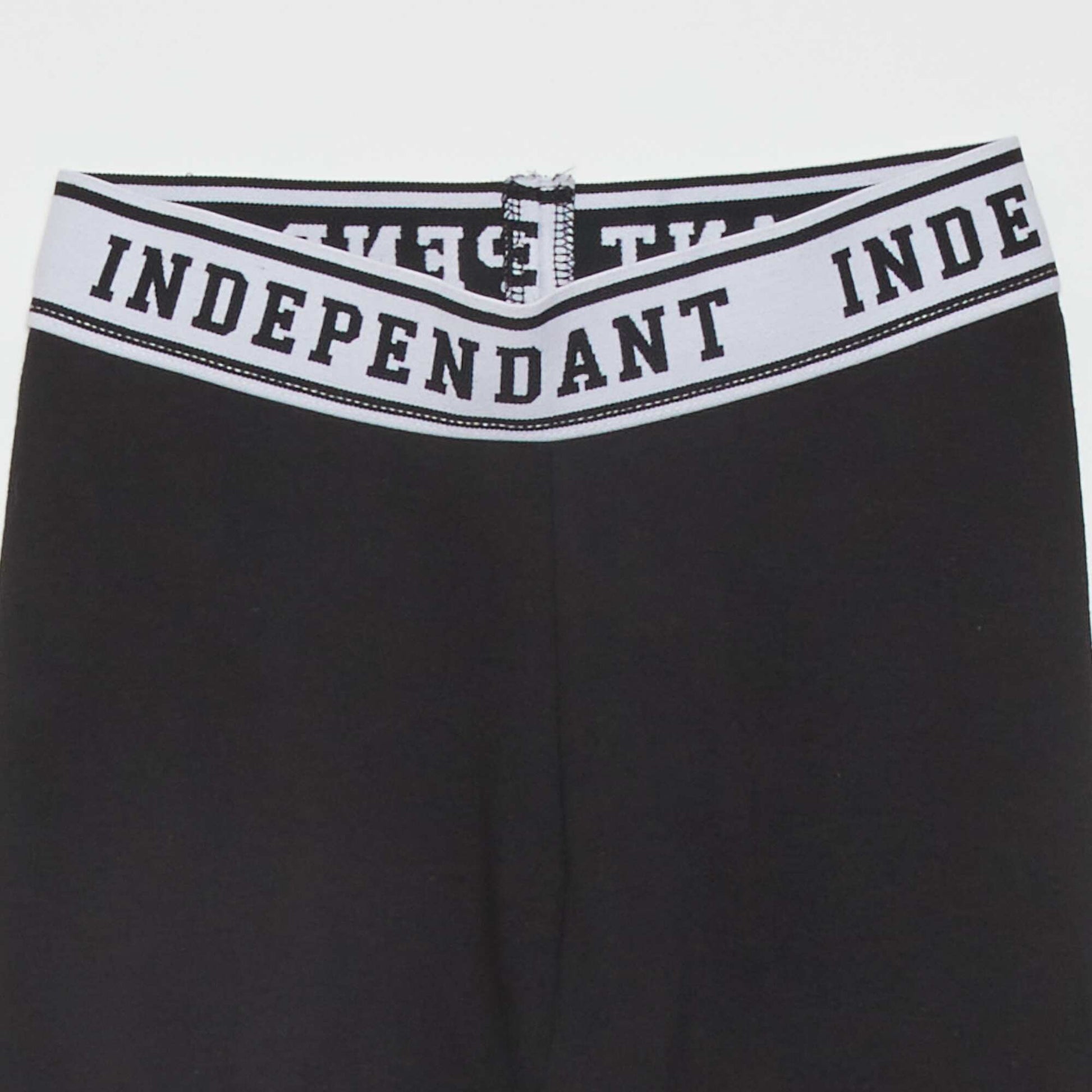 Le confort est indispensable lorsqu'on pratique le sport. Choisissez ce legging ! - Legging de sport - Taille lastiqu e avec inscriptions - Couleur unie - Longueur entrejambe : 74 cm environ - Longueur bas de jambe : 12 cm environ - Notre mannequin porte une taille S et mesure 1m75