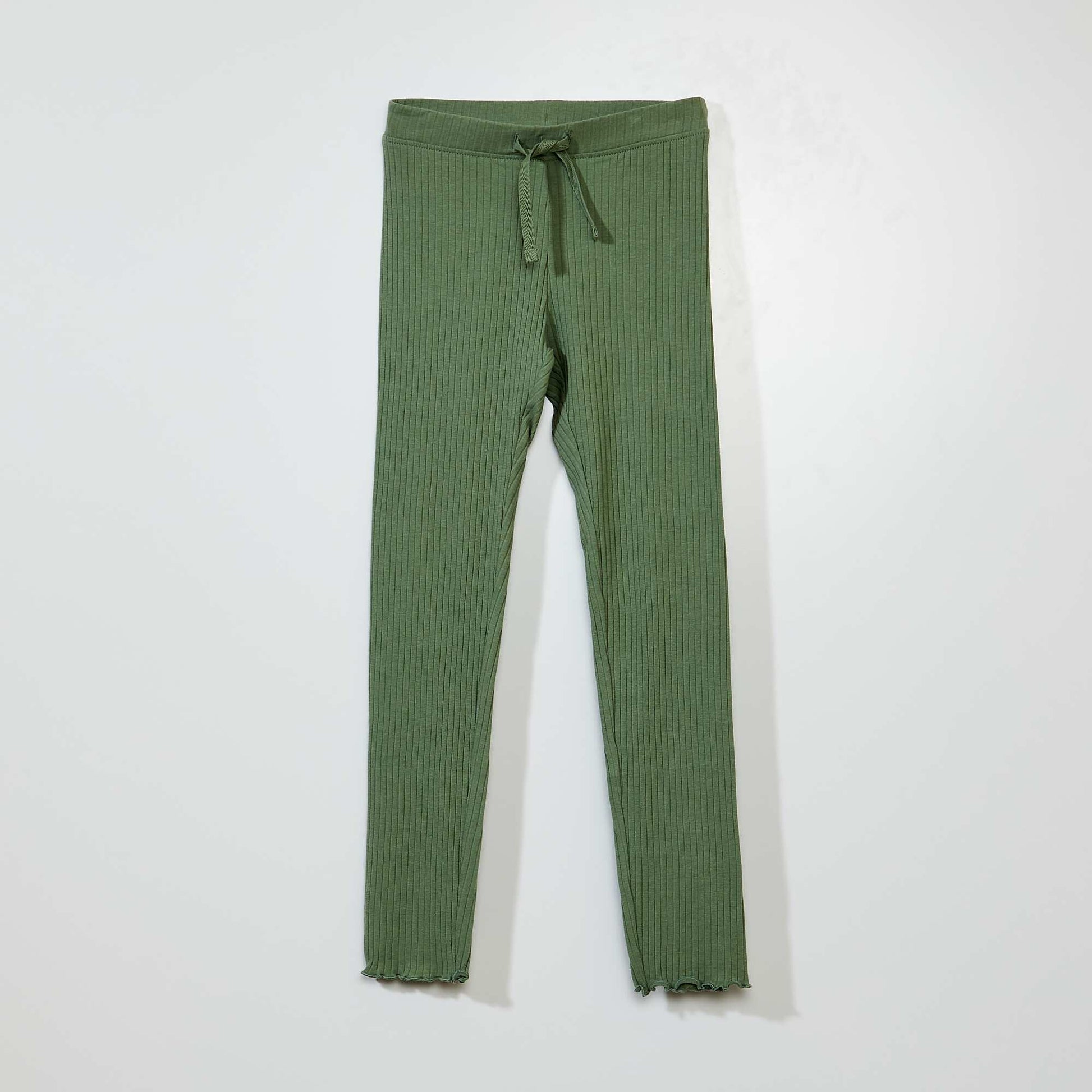 Un legging simple mais efficace. Parfait pour son confort - Legging en maille c tel e - Mati re stretch - Taille lastiqu e - Finition volant e - Couleur unie