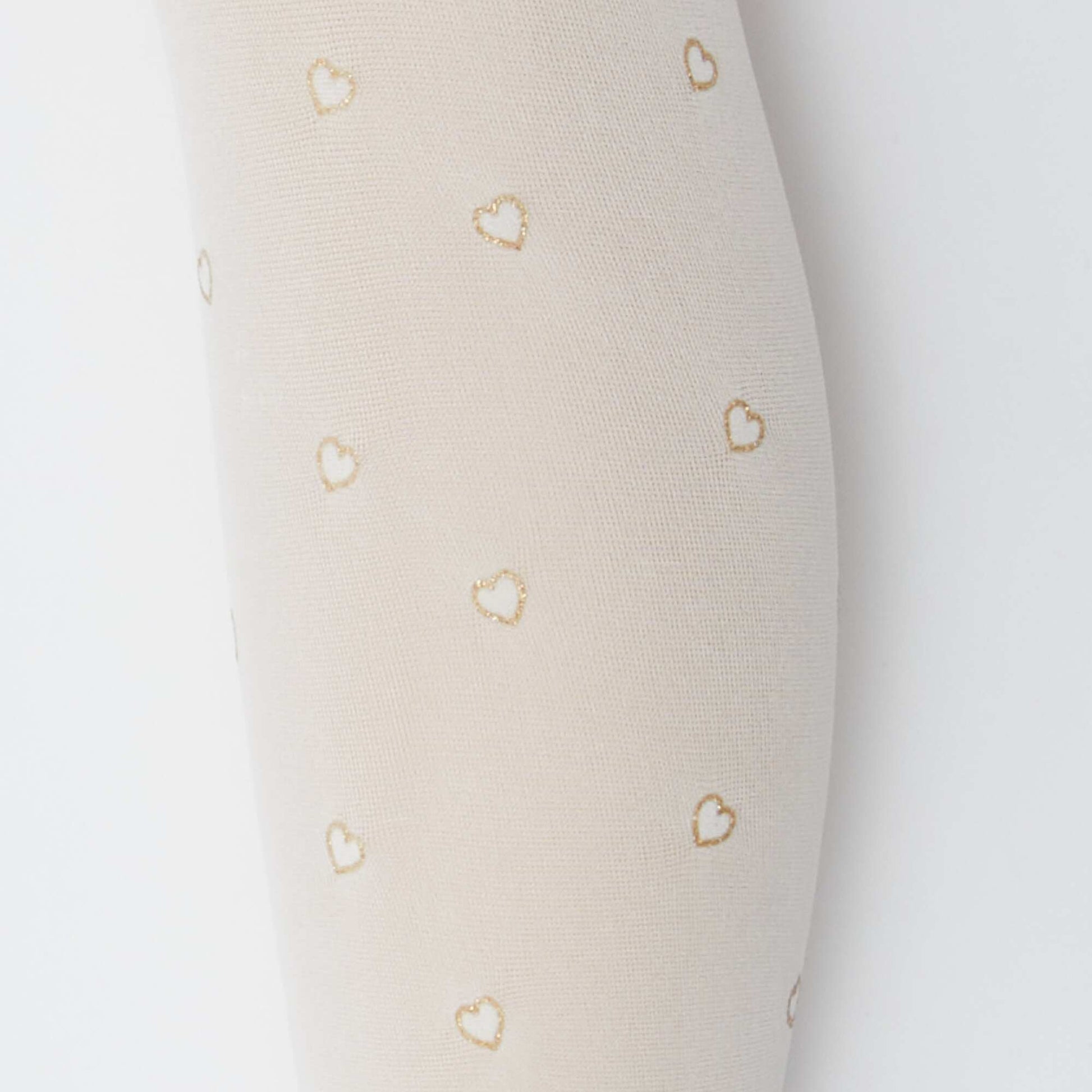 Élevez son style avec notre lot de 2 paires de collants légers et fantaisies. - Collants légers - Lot de 2 - En maille fine - 1 paire fines rayures - 1 paire motifs 'coeurs' all-over - Taille élastique - Détails en fibre brillante
