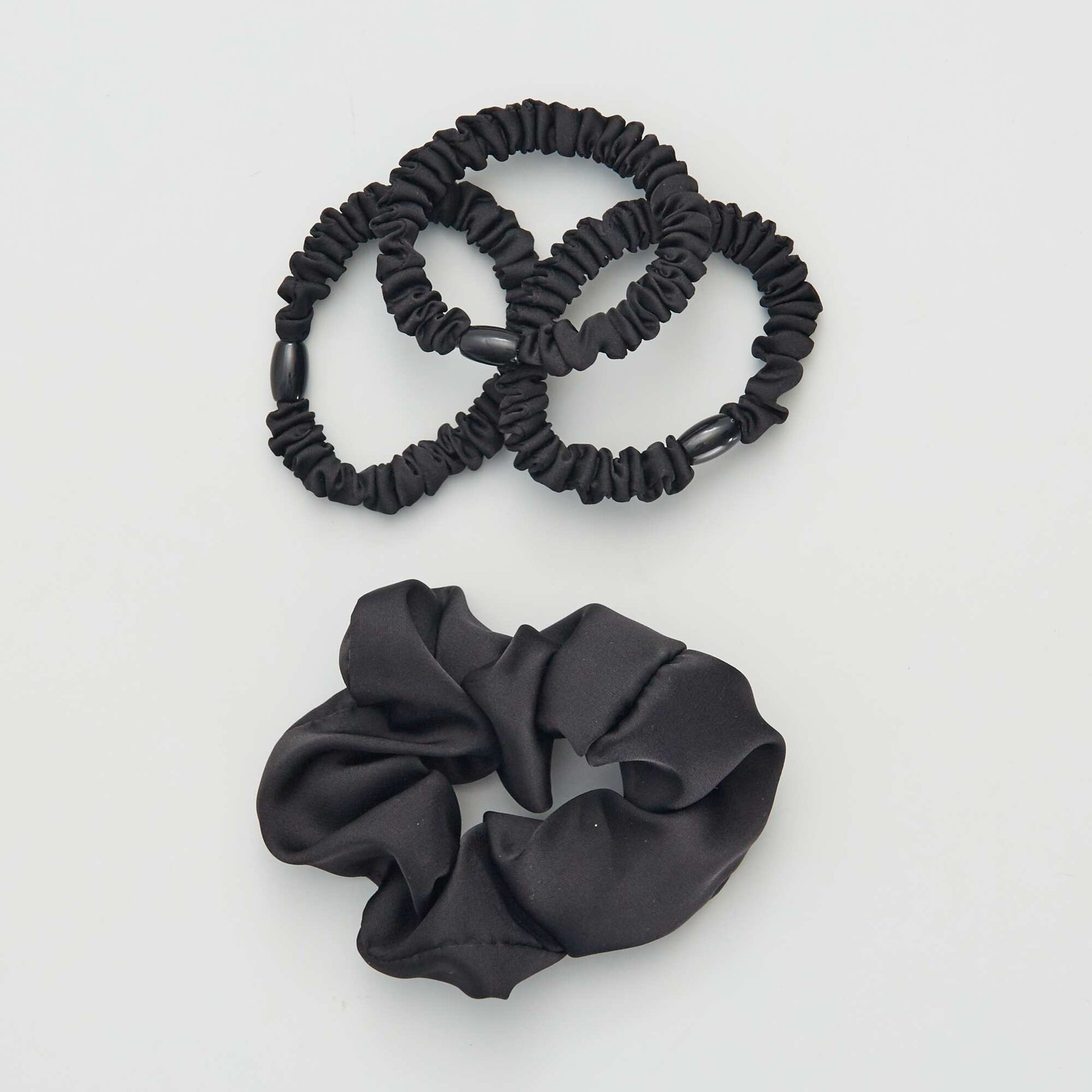 Un ensemble parfait de chouchous satin s pour des coiffures l gantes. - 3 lastiques + 1 chouchou - Mati re effet satin e