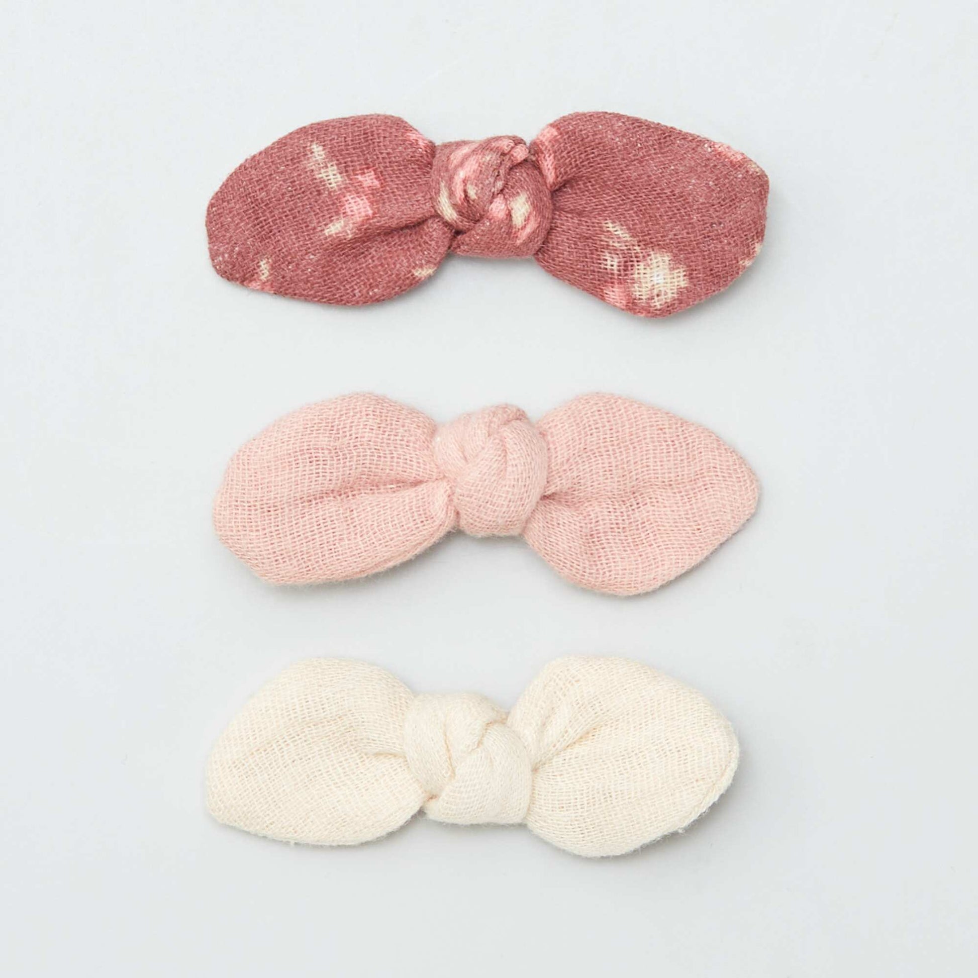 Les pinces adorables pour coiffer votre fille de sa plus belle chevelure ! - Lot de 3 pinces nœud - Attache croco - Nœud en gaze de coton